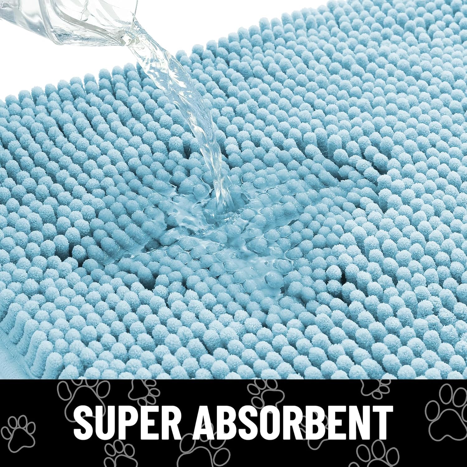 Smiry Dog Door Mat for Muddy Paws, Absorbent Dirt Trapper Non Slip Quick Dry Washable Chenille Mat for Mud Dogs, Entry Rug for Indoor and Outdoor (40x32 Inches, Sky Blue)