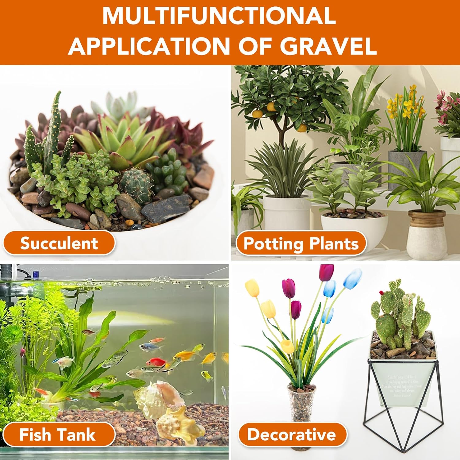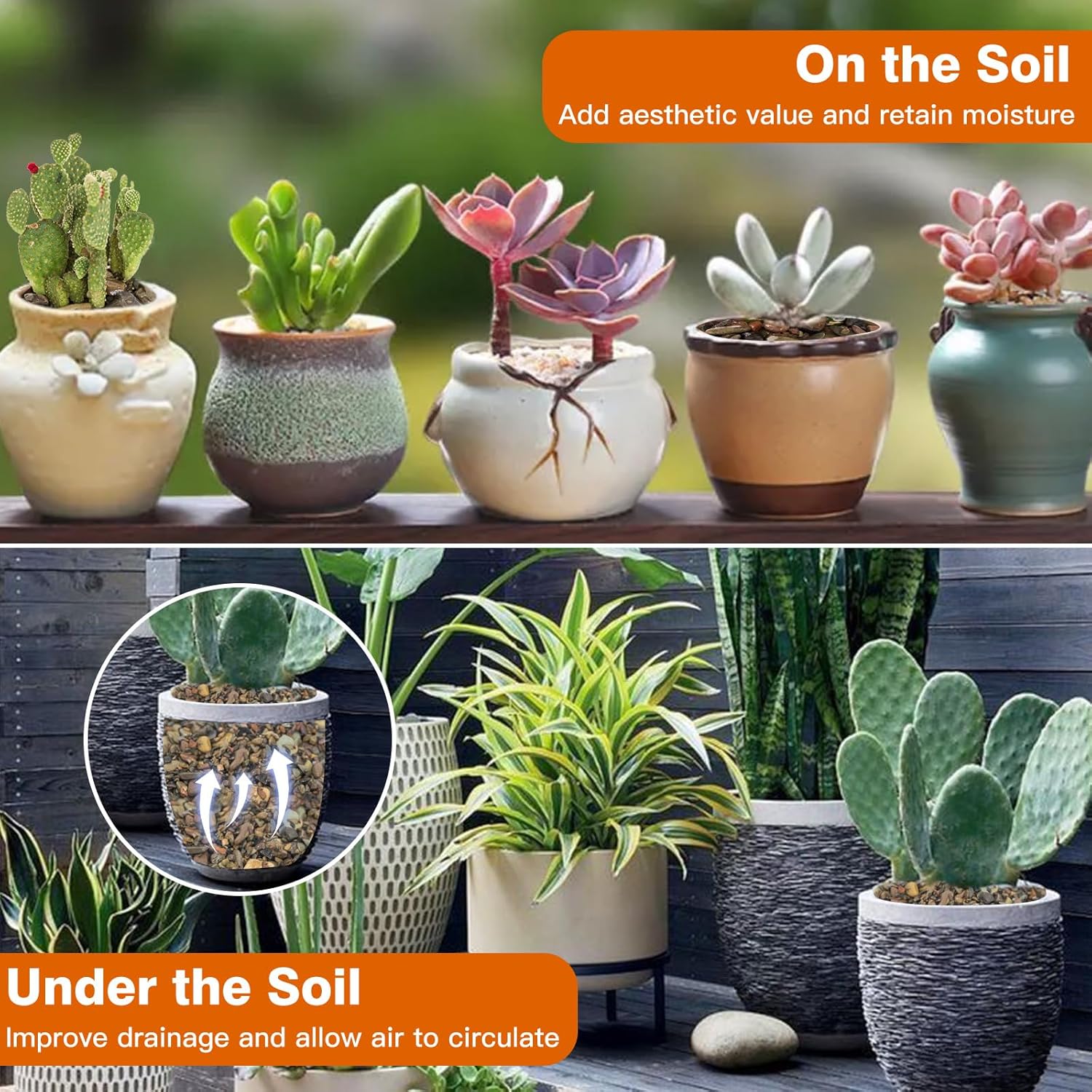- BENEFIT FOR PLANT --- Rocks are very matched with green plants, like bonsai, succulents and flowers,They can provide mineral trace elements for plants and cover soil to keep the soil from splashing during watering. It is perfect for home decor and a creative interior design.