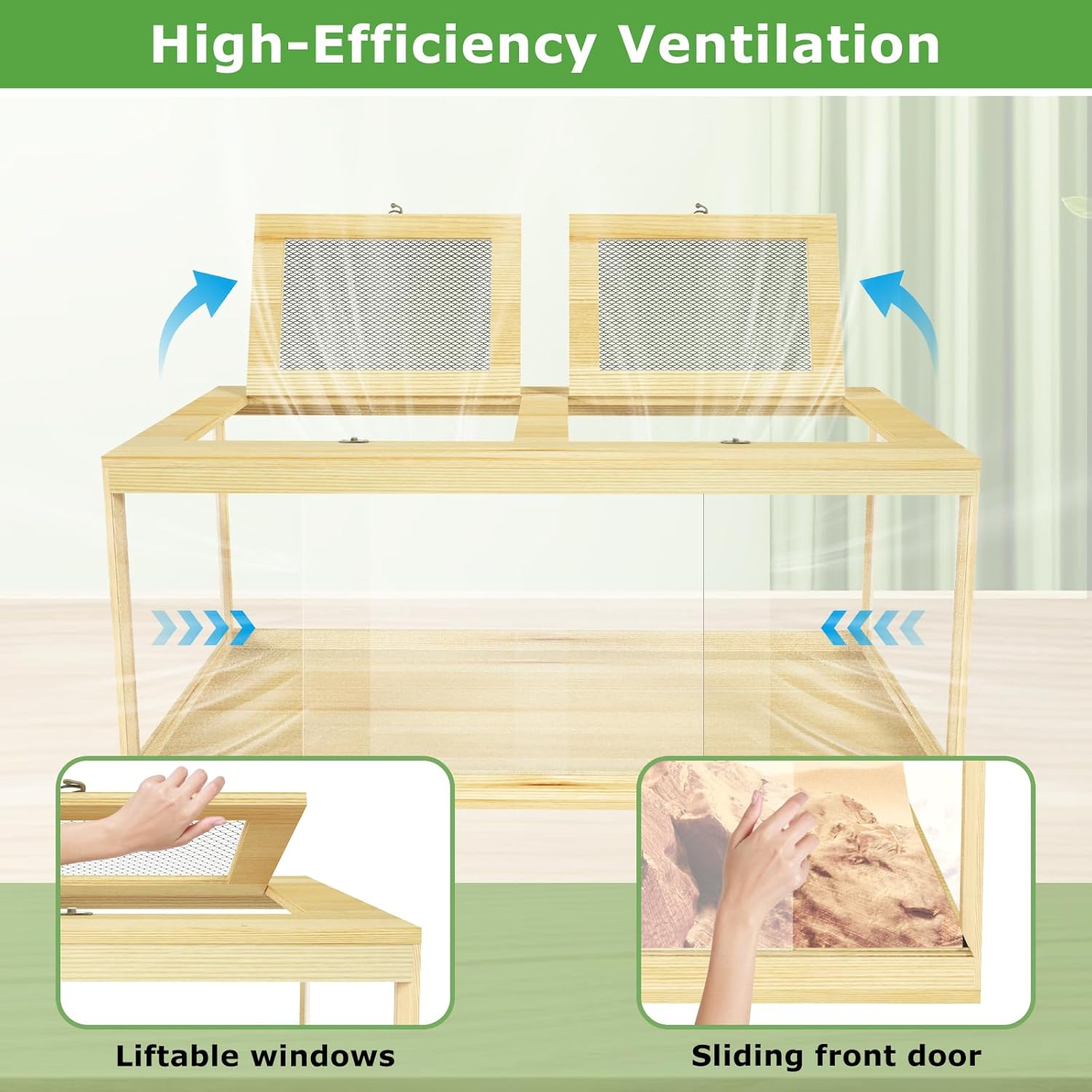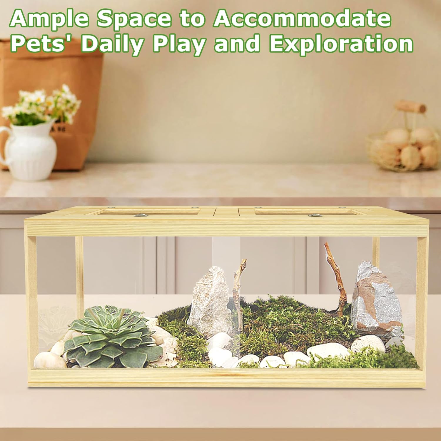 - Pet-friendly natural habitat: Nalwort reptile tank is constructed with solid wood and acrylic materials, featuring the natural wood grain and texture of pine. This design truly simulates the reptiles' natural habitat, providing a comfortable living space. (Please note: the reptile terrarium tank is NOT suitable for water storage)