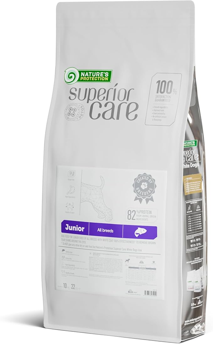 Nature's Protection Small & Large Breed Puppy Food Dry - Grain Free, High Protein, Anti-Tear Stain Formula - Dog Kibble for All Breeds with White or Light Fur (Superior Care - Salmon, 22 lb)
