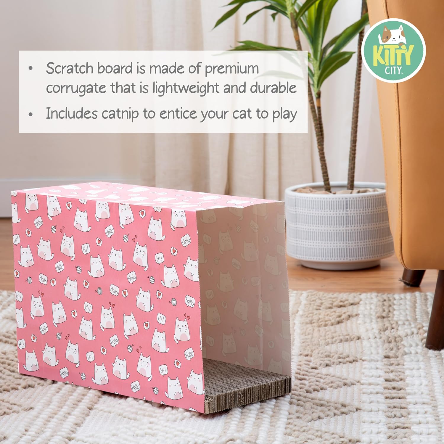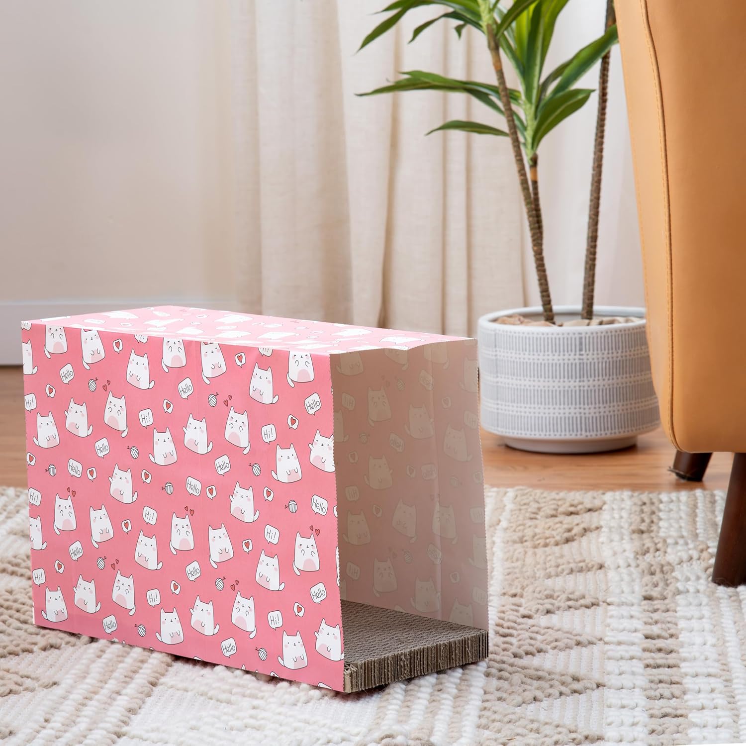- nrichment Activity Designed for Cats - combines a safe and cozy hideaway space, the enticing crinkling of a paper bag and enriching corrugate scratching material to keep your cat engaged