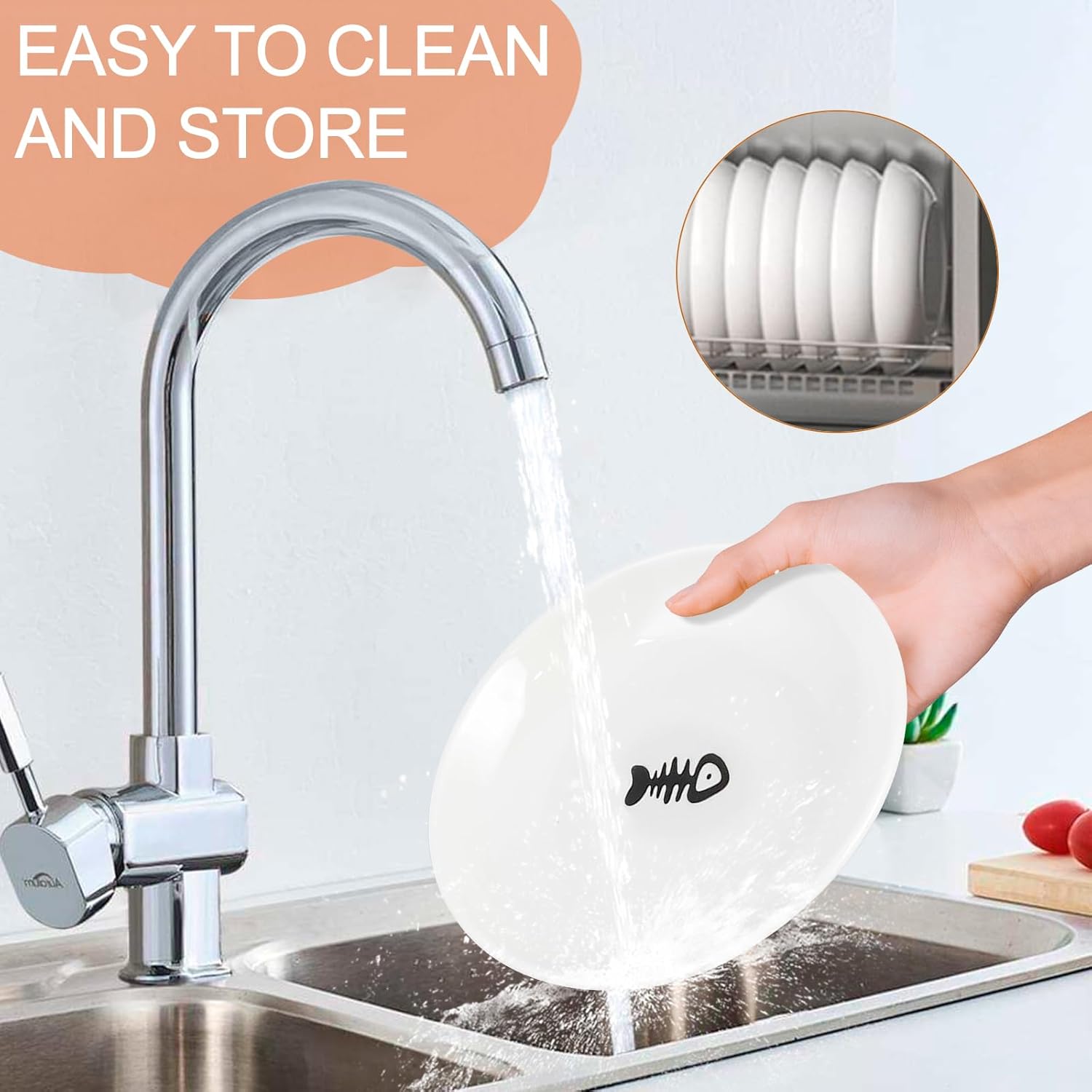 - 🐾【6 Cute Cat Bowls Set to Meet Various Needs of Multi-Cat Families】The cat food bowls with fishbone patterns make the food look more delicious, easier to attract the cat's attention and increase the cat's appetite. The 6 cat bowls can easily meet the various needs of families with multiple cats and other pets: puppies, rabbits, hamsters. The kitten food bowl can also be used to hold different foods: wet and dry food, cat snacks, kitten milk, water.