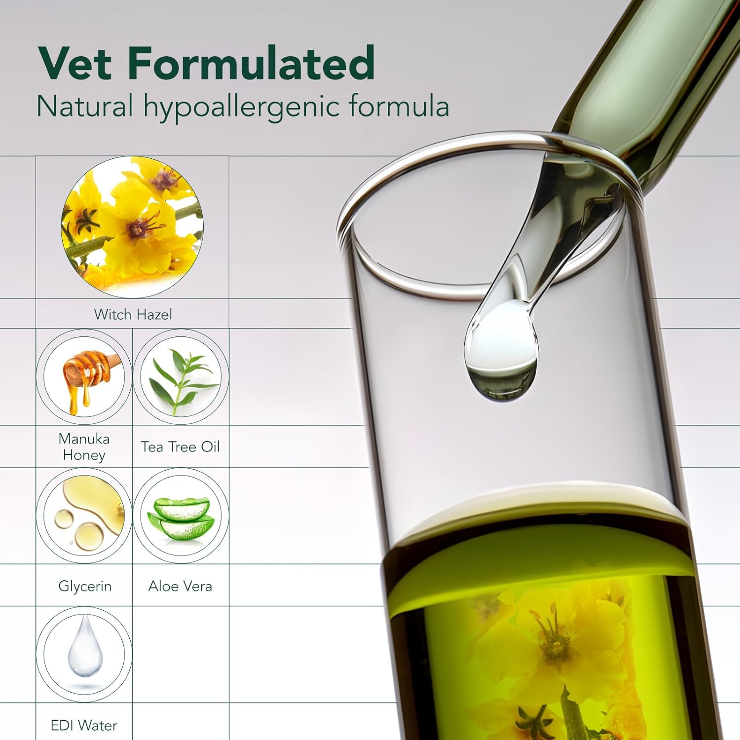 - Safe Ingredients - This dog finger ear wipes is made of: EDI puried water, witch hazel extract, aloe vera extract, tea tree essential oil, manuka honey, glycerin. It helps regulate skin oil secretion while moisturizing delicate skin, leaving the ear canal fresh and non-greasy, and reducing ear itching. Even repairs damaged skin barriers, enhances ear resistance, and reduces the occurrence of ear problems