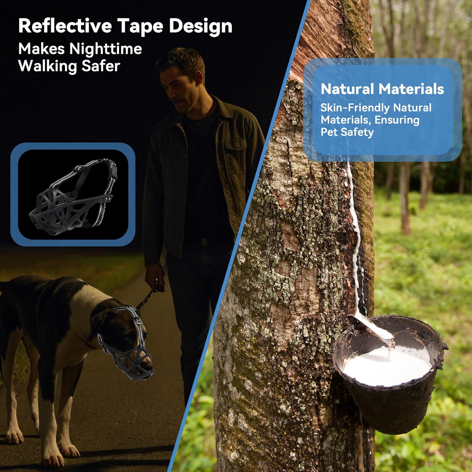 - Easy to Put on and Remove: Designed for Convenience, The Adjustable Straps on Our Dog Muzzle Allow for Quick and Secure Fitting. The Ergonomic Design Ensures a Hassle-Free Experience for Both You and Your Dog, Making it Ideal for Daily Walks, Training Sessions, Or Visits to the Vet. Reflective Strap Design Provides Night Travel Safety