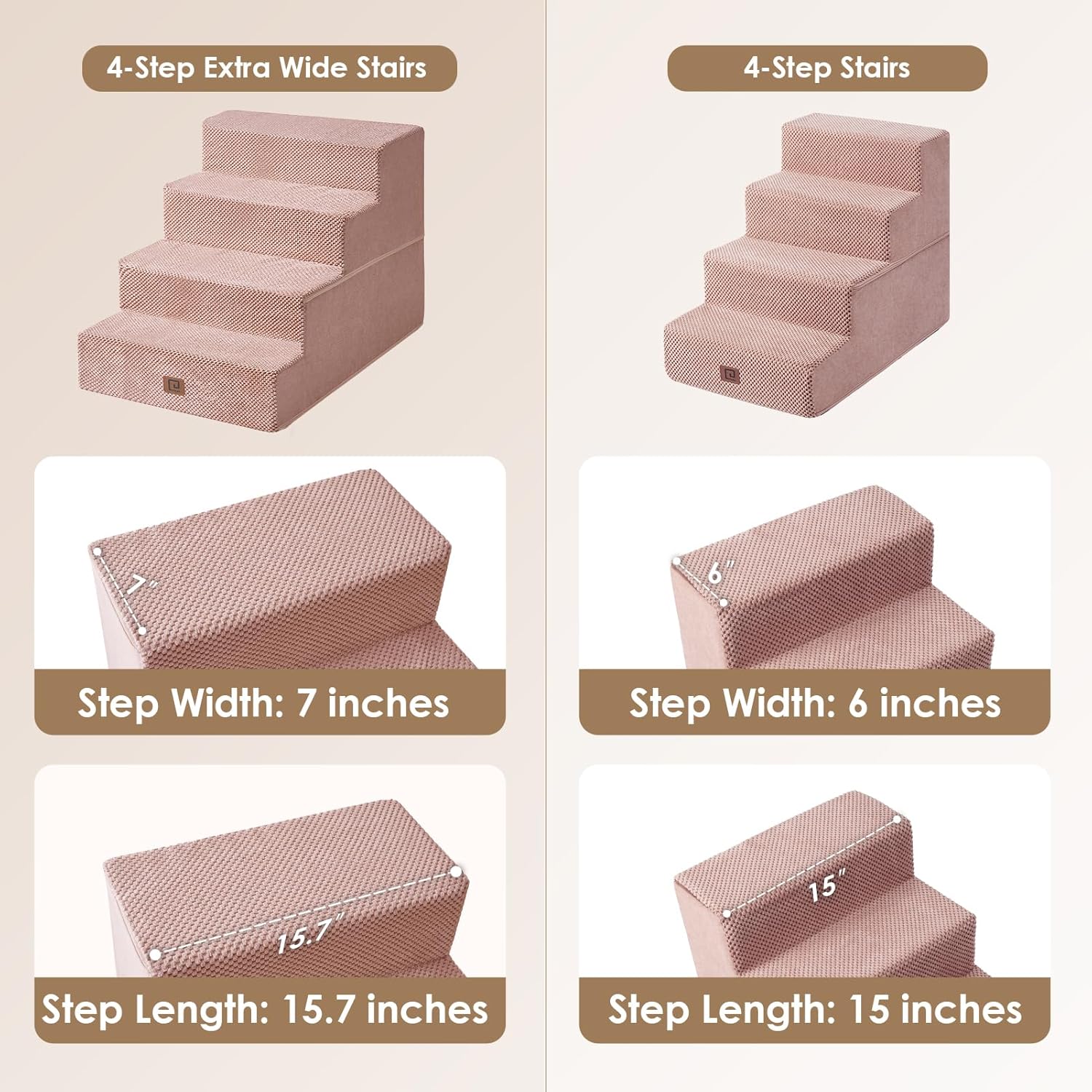 EHEYCIGA Dog Stairs for Bed 20" H, 4-Step Extra Wide Dog Steps for High Bed, Pet Steps for Small Dogs and Cats, Non-Slip Balanced Pet Ramp Indoor, Pink