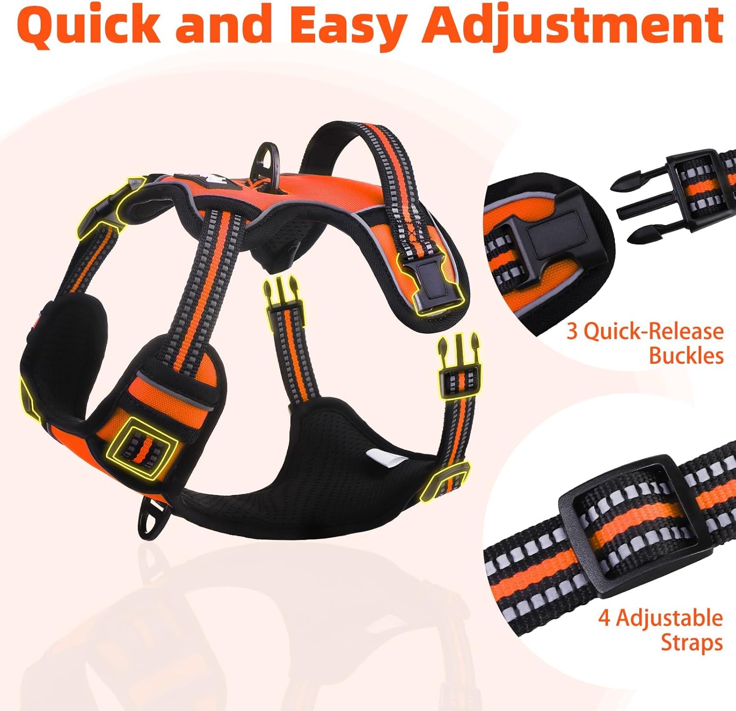 PUPTECK No Pull Dog Harness for Large, Adjustable Reflective Dog Harness with Handle Easy Control, Comfortable Soft Padded Pet Vest Harness for Extra Large Dogs, Orange XL