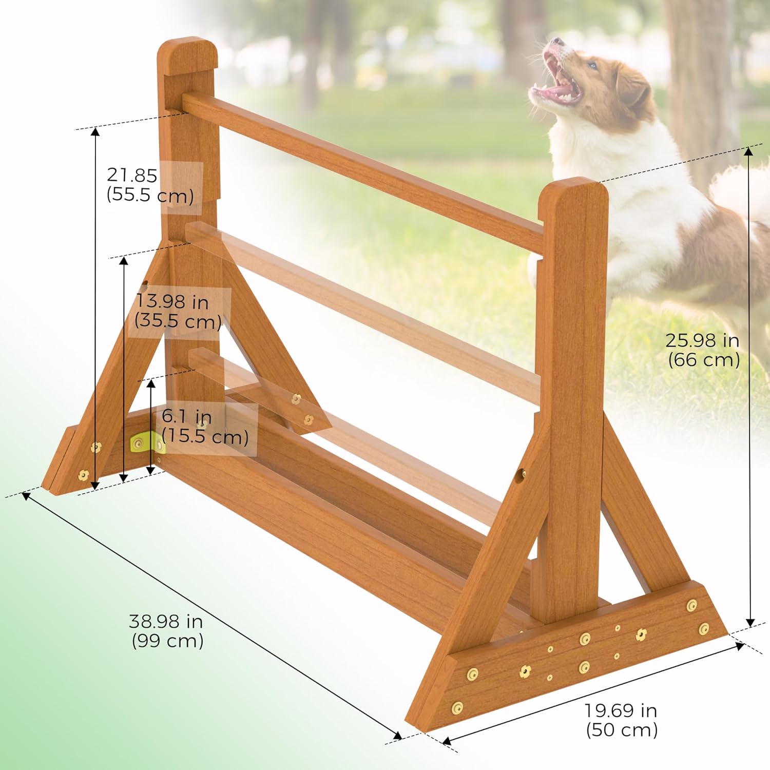 - Customizable Height Settings: This dog training exercise equipment is supplied with 3 Wooden detachable pole which can change the equipment height easily and flexibly.It is suitable for dogs of all sizes and ages (juvenile/strong/elderly) and other dogs in need of rehabilitation.