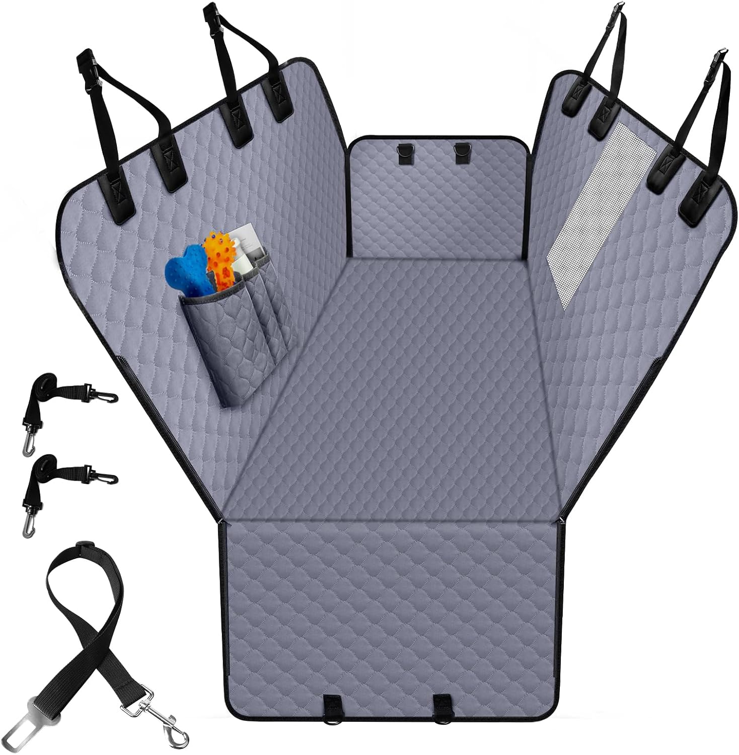 Dog Car Seat Cover for Back Seat, Waterproof Protector with Side Flaps, Scratchproof Hammock, Non-Slip Bottom for Cars/Trucks/SUVs (Grey02)