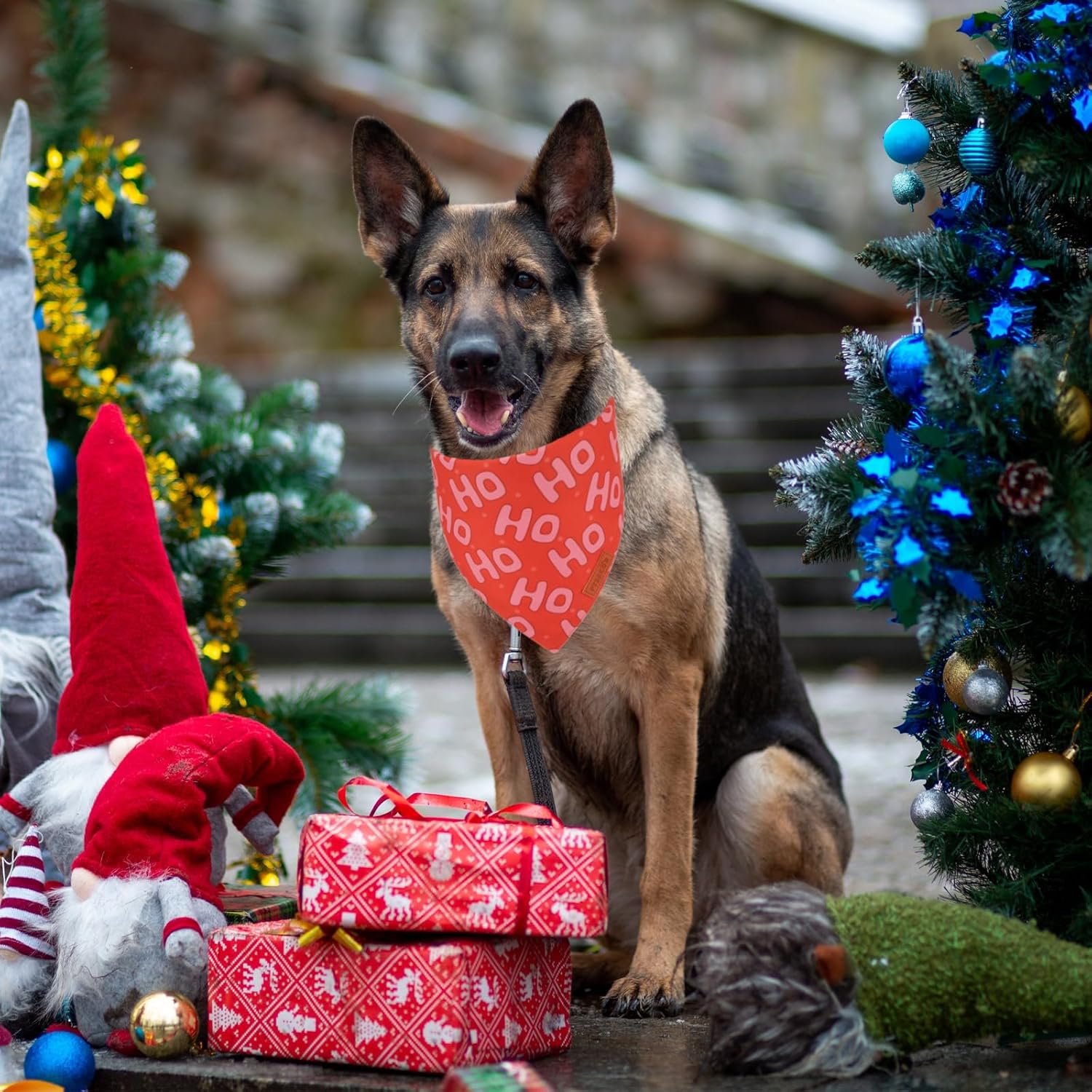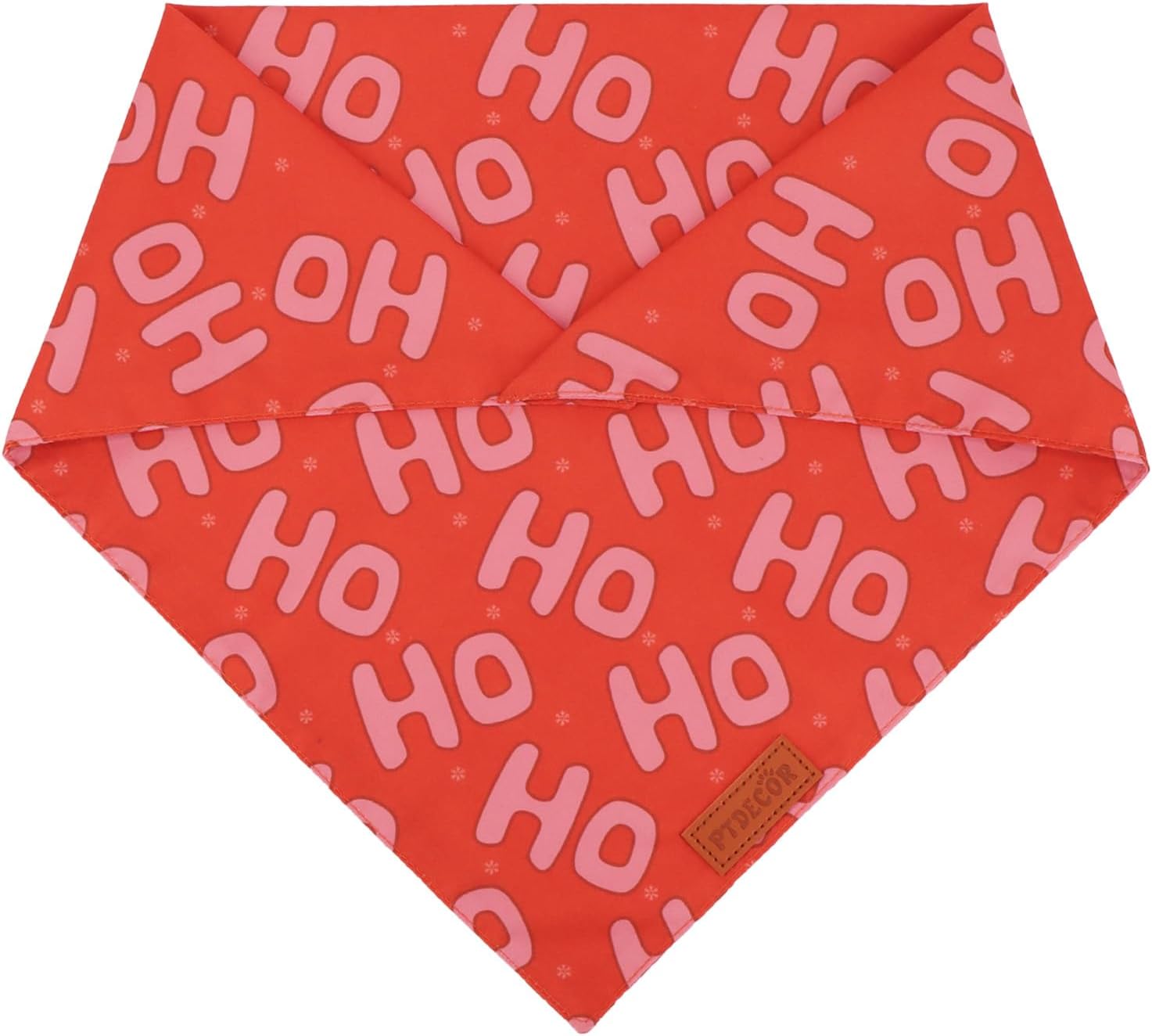 PTDECOR Christmas Dog Bandana, Xmas HOHO Santa Design Reversible Holiday Dog Scarf, Triangle Christmas Bandanas for Large and Extra Large Pets (X-Large)