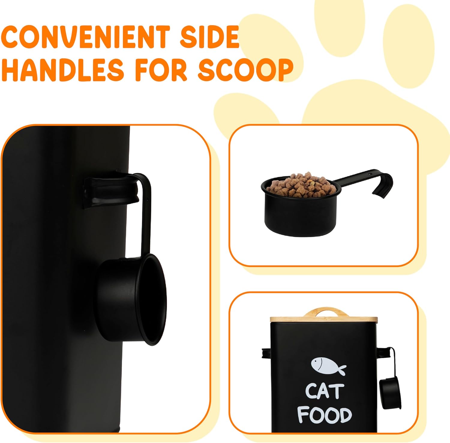 Calindiana Airtight Cat Food Storage Container with Bamboo Lid & Scoop – Farmhouse Cat Food Organizer, Gifts for Cat Lovers (Matte Black)