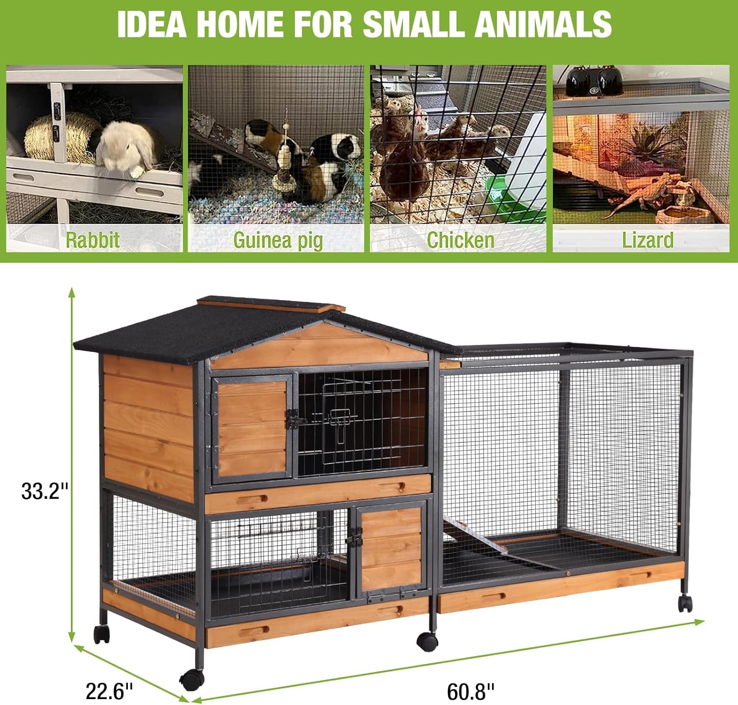 GUTINNEEN Rabbit Hutch Outdoor with Metal Surround Indoor Rabbit Cage with Wheels Bunny Cage Large Guinea Pig Cage for Small Animals with Tray