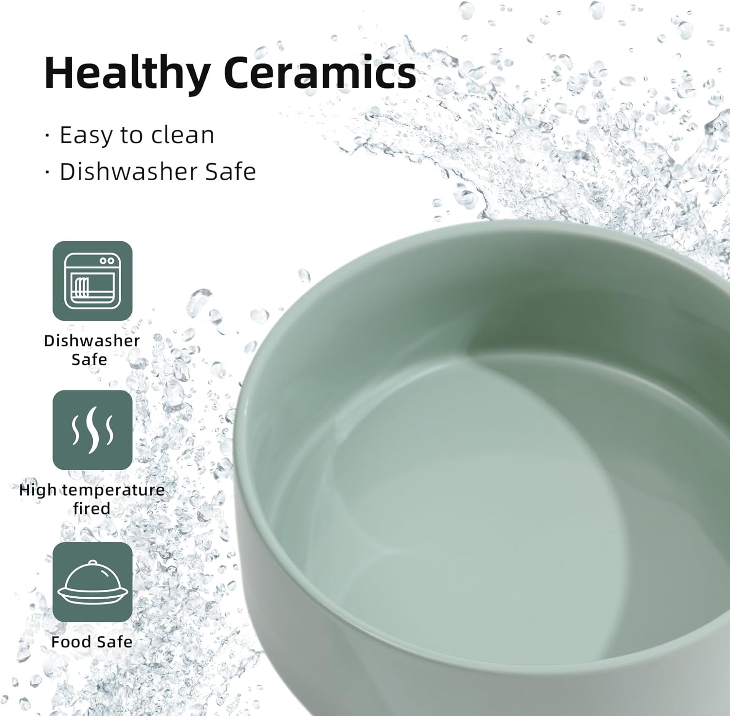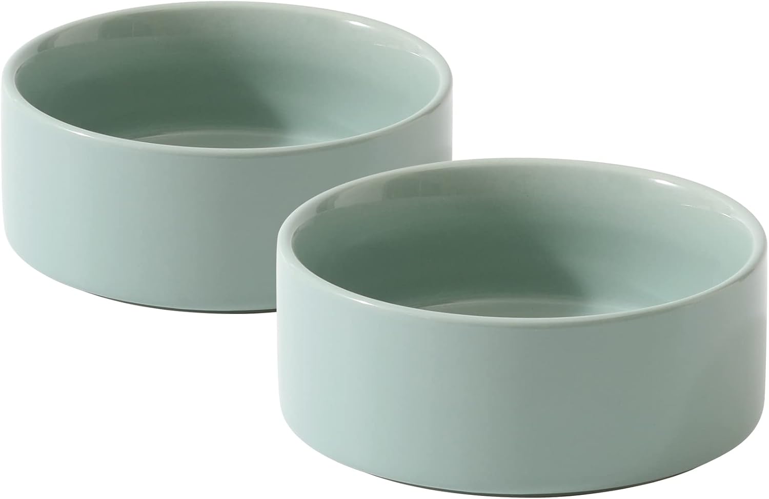 Ceramic 5.1inch Set of 2 Dog and Cat Bowls, 2pcs Anti-Slip Food and Water Feeder Dishes for Puppies, Kitties, Cats(2 Bowls, Light Green)