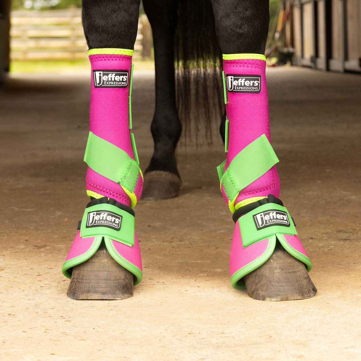 Jeffers Expression Neon Horse Boots 1 Pair – Pink & Lime, Breathable Neoprene with Secure Strap Closures, Durable Premium Protection for Jump Training & Trail Riding – Front & Hind, Medium Size