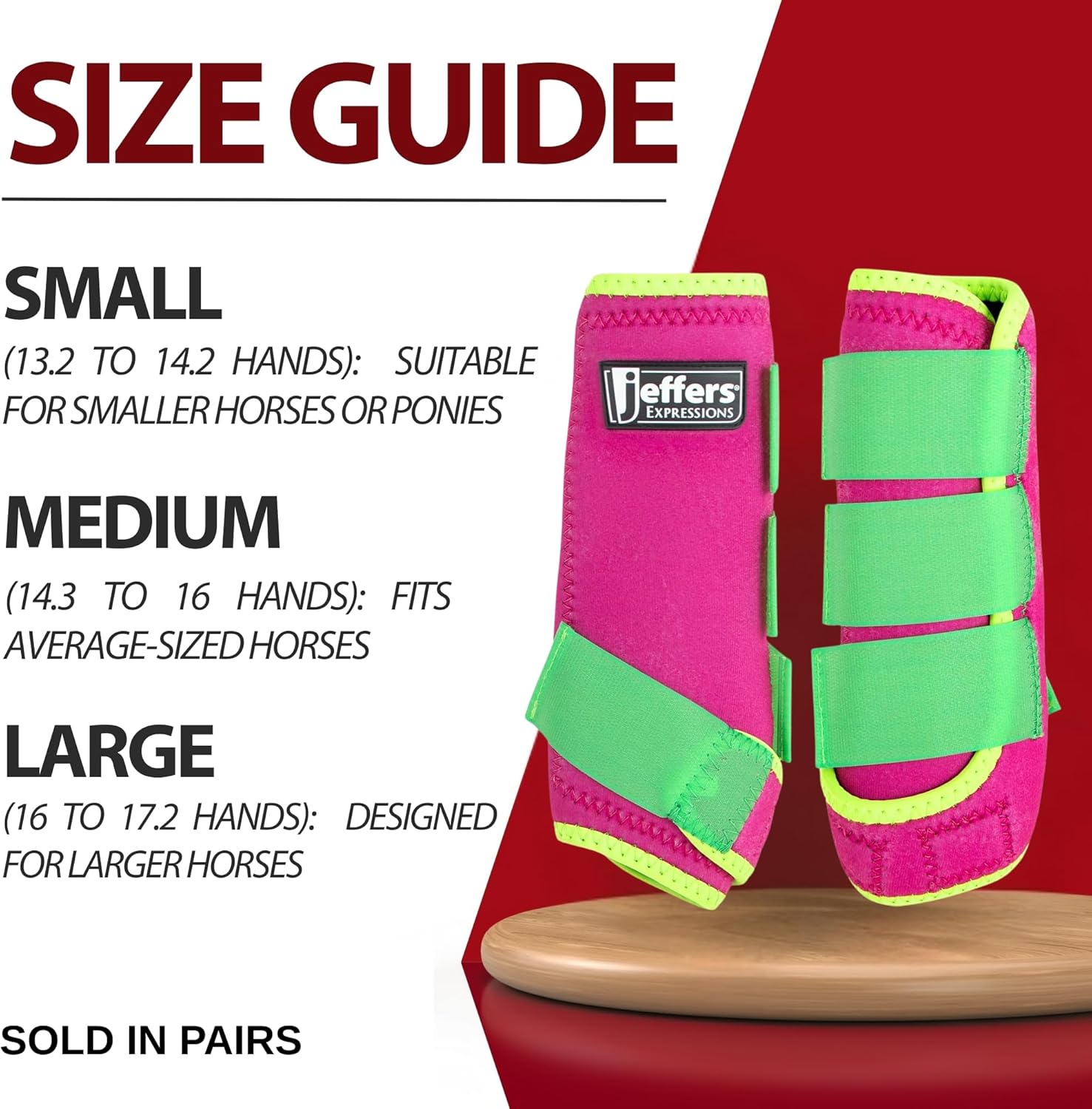 - Bold Neon Design & Protection - Stand out with Jeffers Expression Neon Boots, designed for optimal protection and style, using breathable neoprene for comfort in equestrian athletics & trail riding.
