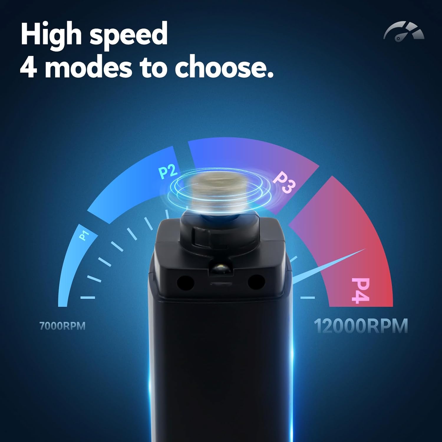 - Practical LCD Screen Display: The nail grinder has an LCD screen, which adds a sense of technology and improves the overall quality of the product. It allows you to clearly see the current working status, such as speed levels, battery power. Intuitive and simple operation interface,making it easier to use.Users can adjust settings according to their needs.