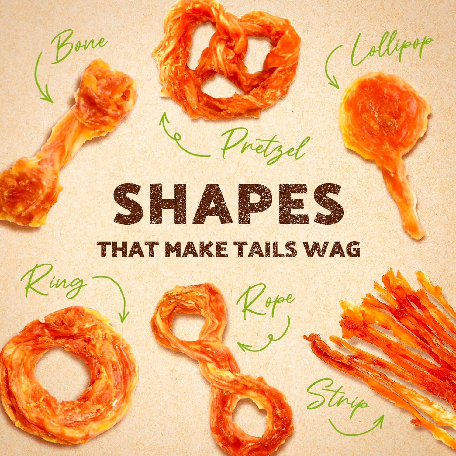 - Hypoallergenic: These chews are rawhide-free, grain-free, and made without common allergens, fillers, or artificial additives — a cleaner, allergy-friendly option for dogs with food sensitivities or intolerances. A trustworthy hypoallergenic dog treat made with simple, wholesome ingredients your pup will love.