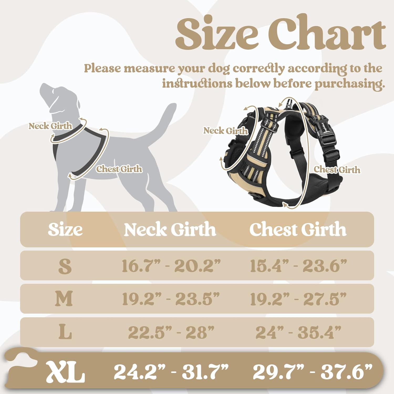 rabbitgoo Dog Harness for Large, No Pull Pet Harness with 3 Buckles, Adjustable Soft Padded Vest with Control Handle, Walking Reflective Pet Vest for Extra Large Dogs, Beige, XL