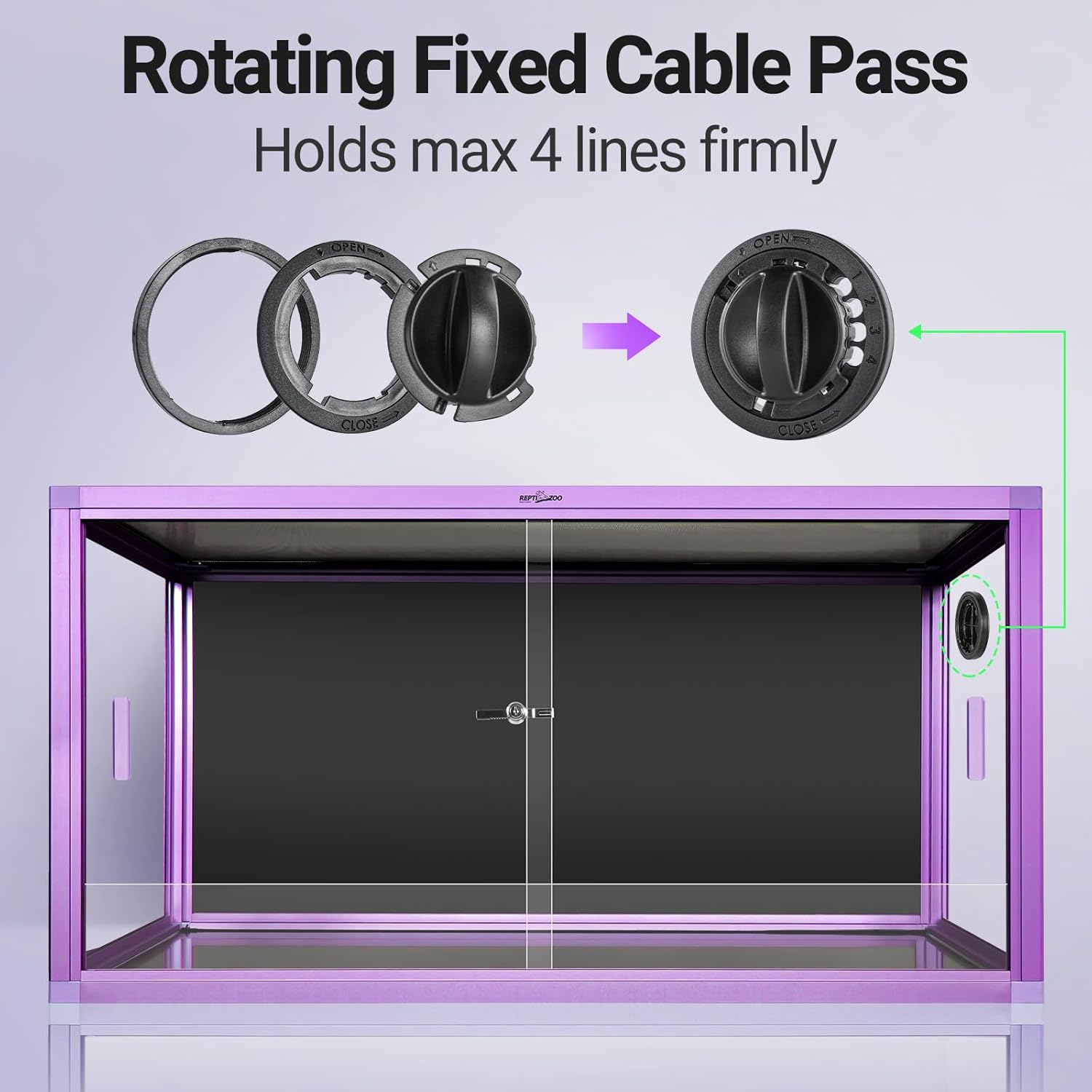 - Versatile Top Mesh & Cable Management: The top screen ventilation not only ensures proper air circulation but also supports the use of heating lamps or UVB lights, crucial for the health of your reptiles. The side cable pass provide a clean and organized way to manage cables from accessories like filters, heaters, and lights, keeping the enclosure looking tidy and your reptiles safe.
