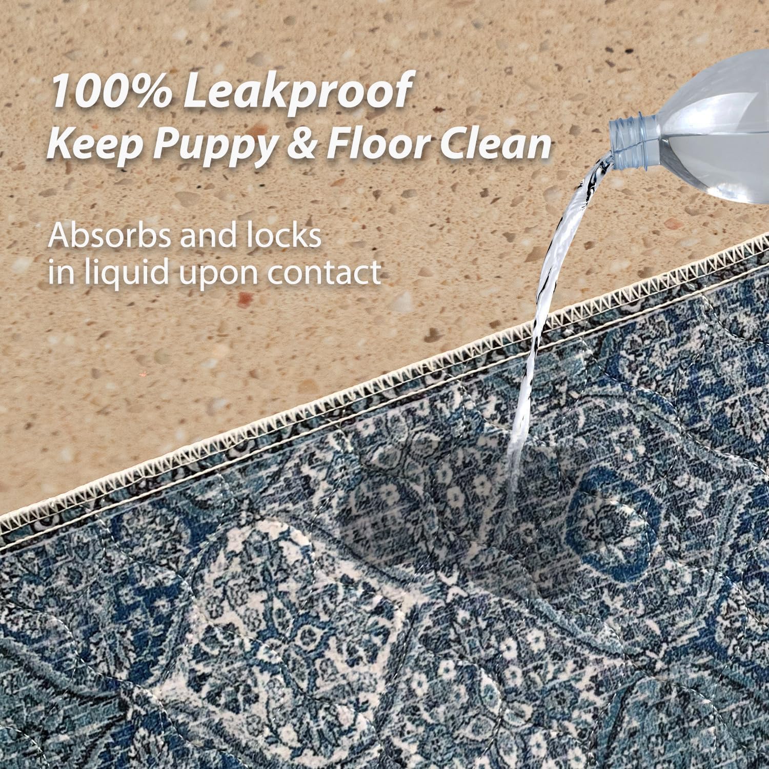 nunubaby Washable Pee Pads for Dogs, Stylish, Non-Slip and Leak-Proof Pee Pads. Reusable Potty Pads for Dogs for Crates and Floors.(Blue/Multi, 31" x36" )