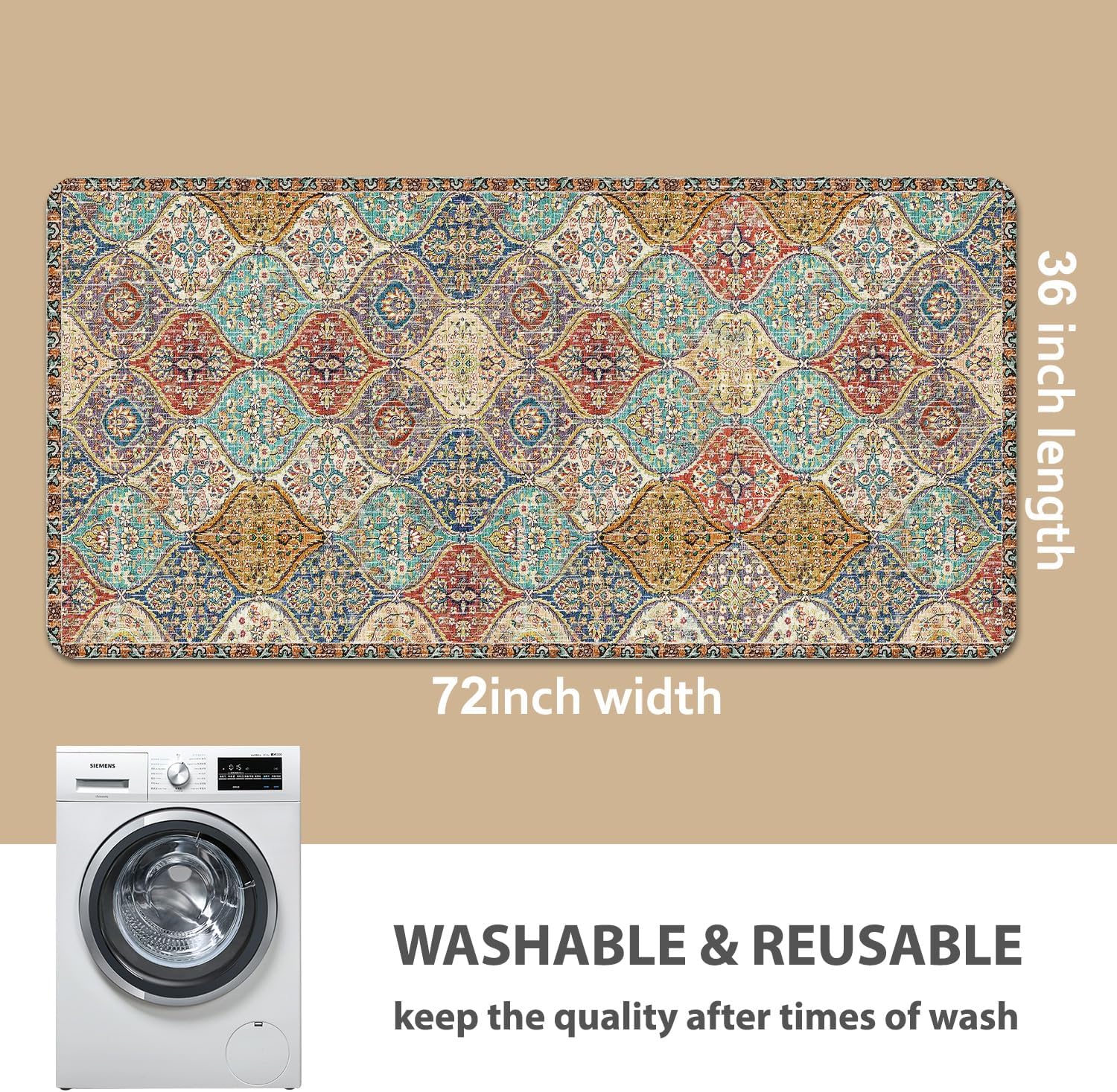 nunubaby Washable Pee Pads for Dogs, Stylish, Non-Slip and Leak-Proof Pee Pads. Reusable Potty Pads for Dogs for Crates and Floors.(Cream/Multi, 36" x72" )