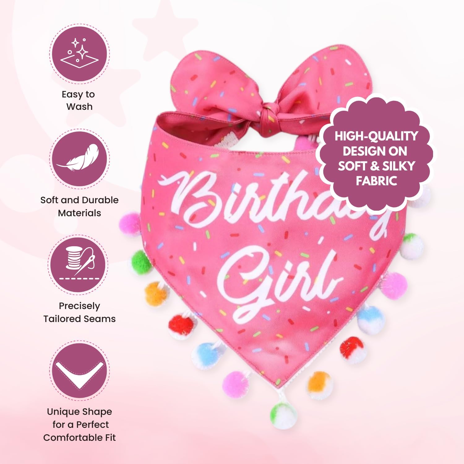 LunaMarie - Luxury Pet Birthday Bandanas -Premium & Silky Poly Fabric | 100% Handmade | Custom Shape Dual Layered (Birthday Girl, X-Small)
