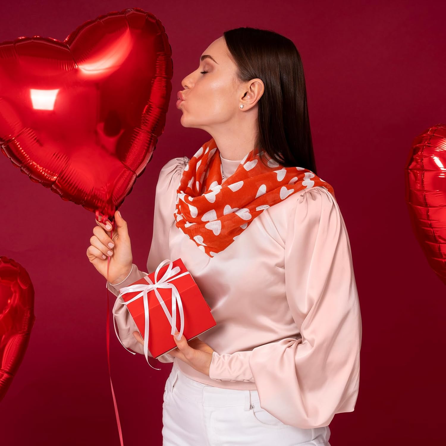 - Red Scarf Size:70x35 inches(180cm*90cm)The long & large red heart scarf for women can be used as a head scarf, face scarf, neckercheif, belt scarf, headbands, shawls and so on