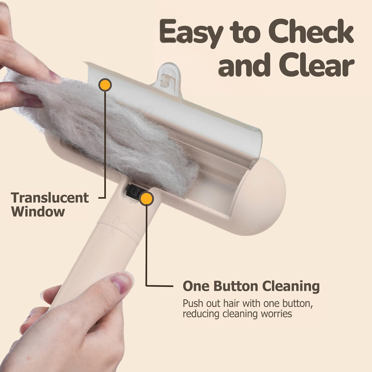 Reusable Pet Hair Remover - Lint Roller for Dog & Cat Fur - for Furniture, Carpet, Clothing - Detachable Handle (Apricot (Light Beige))