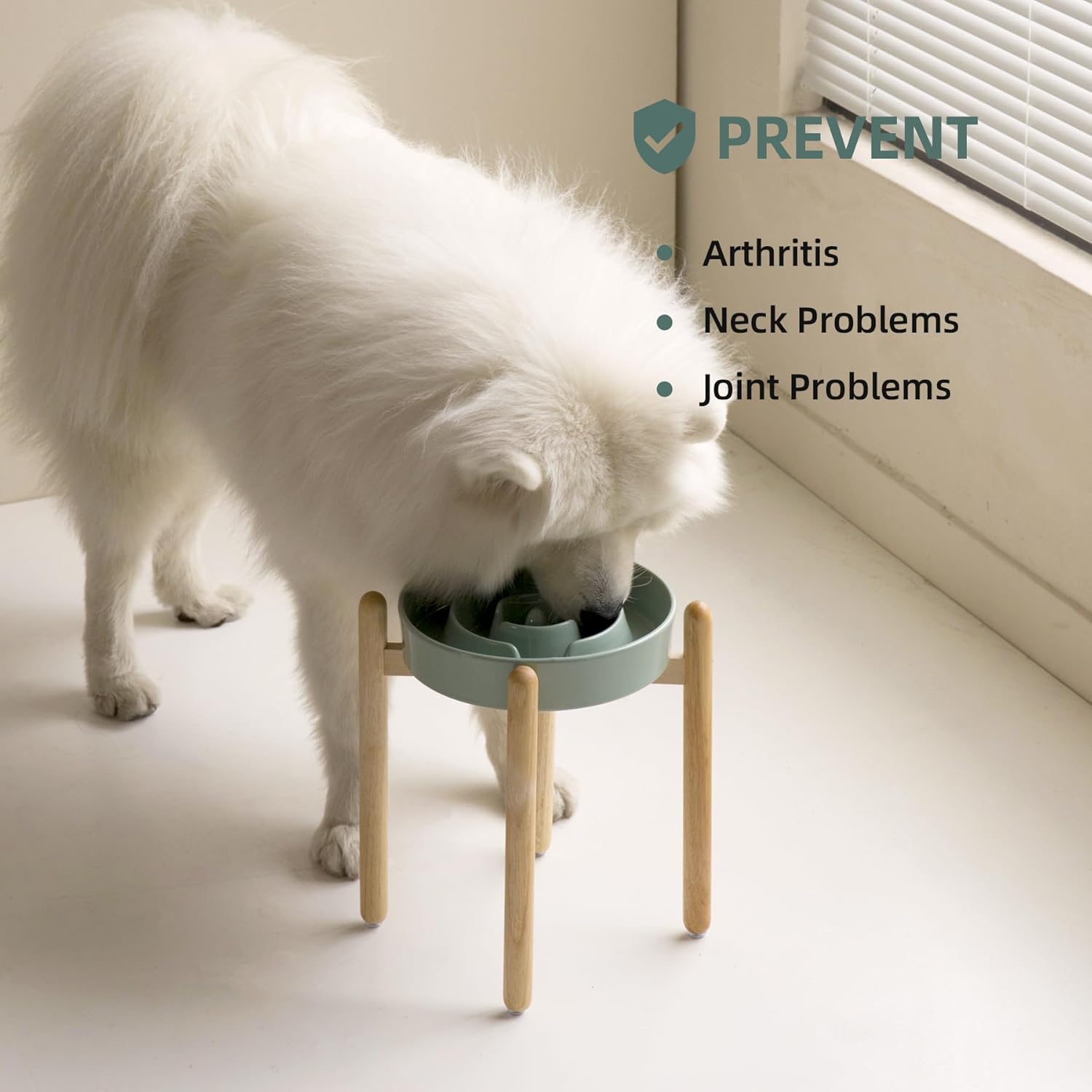 - Rasied Wooden Stand: Raised ceramic dog bowls provide dogs with correct eating posture,improved reducing bloating and neck strain with dogs,and prevents indigestion problem.