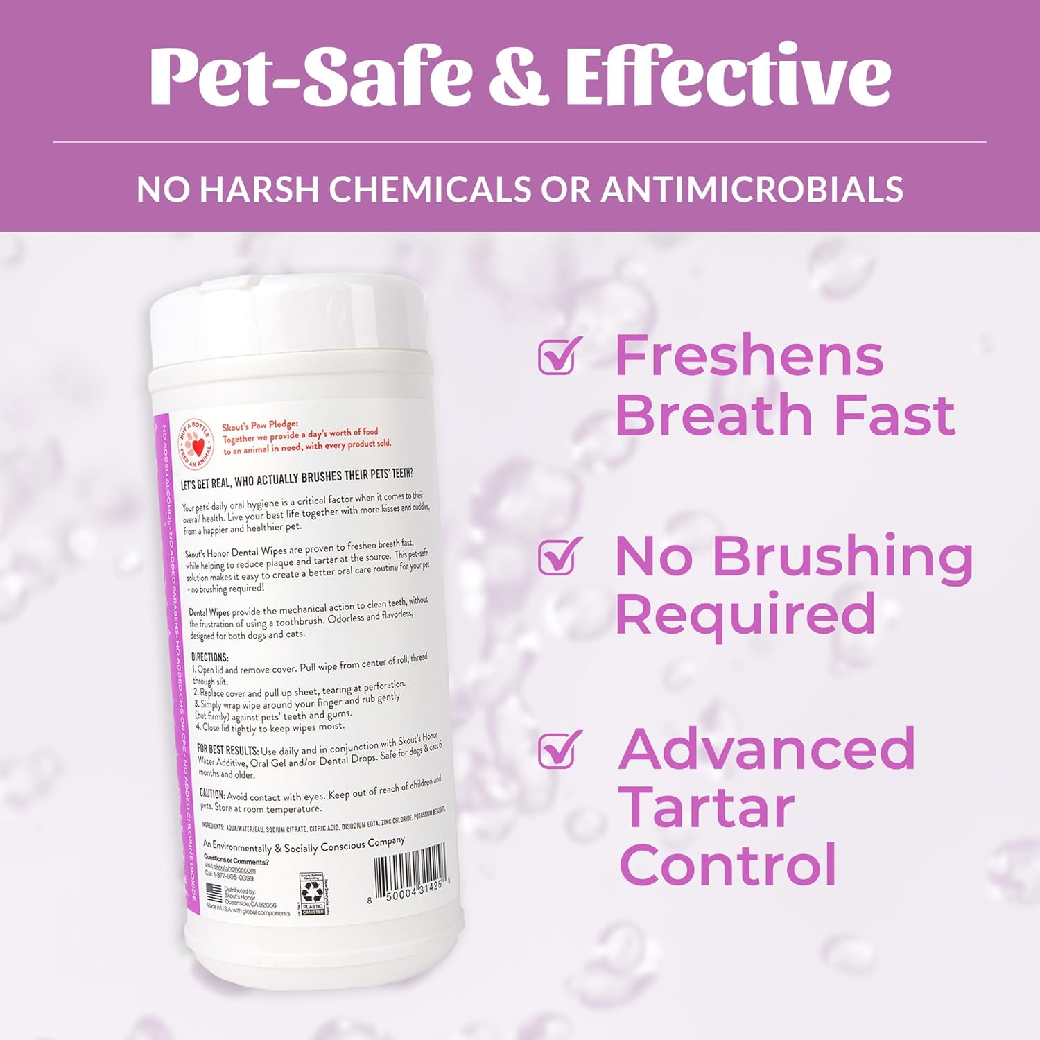 SKOUT'S HONOR Pet Dental Wipes - Fights Plaque and Tartar, Freshens Breath Fast, No Brushing Required, 50 Sheets, 2-Pack