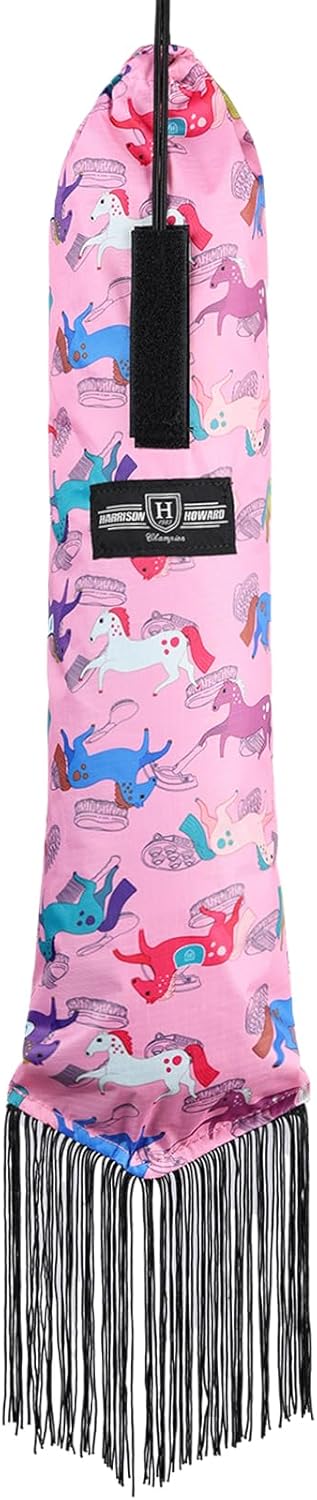 Harrison Howard Smooth Lightweight Adjustable Fastener Nylon Horse Tail Bag with Fringe