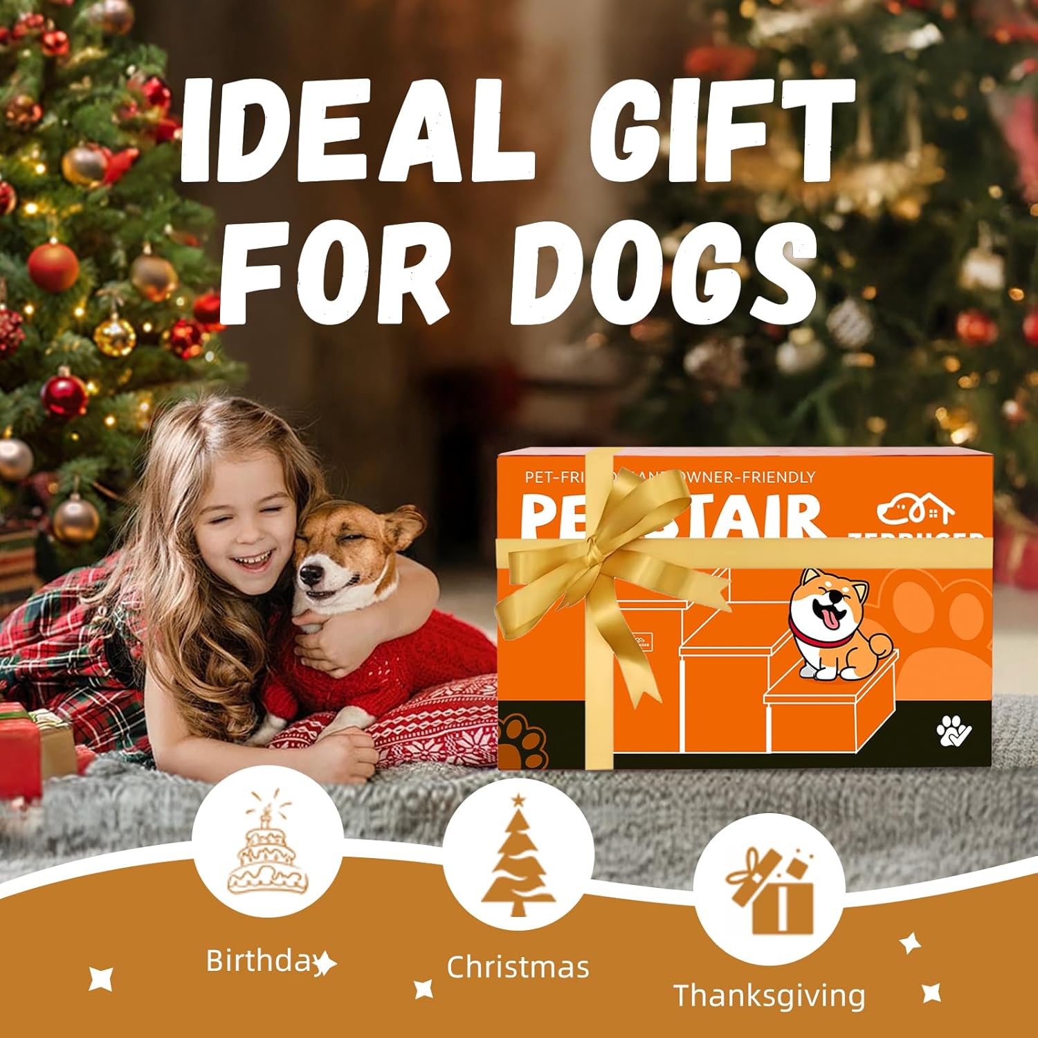 - MORE STABLE AND COZY: Zerbuger dog stairs are made of MDF and include foam, which relieves pressure on pets' paws and joints. Our pet steps are perfect as a warm GIFT for you hurt, disabled and elderly dogs. The removable board pads are placed inside to ensure that the pet steps are stable enough without any wobbling. The non-slip bottom ensures that the pet steps don't move. The dog stairs can support up to 200 LBS.