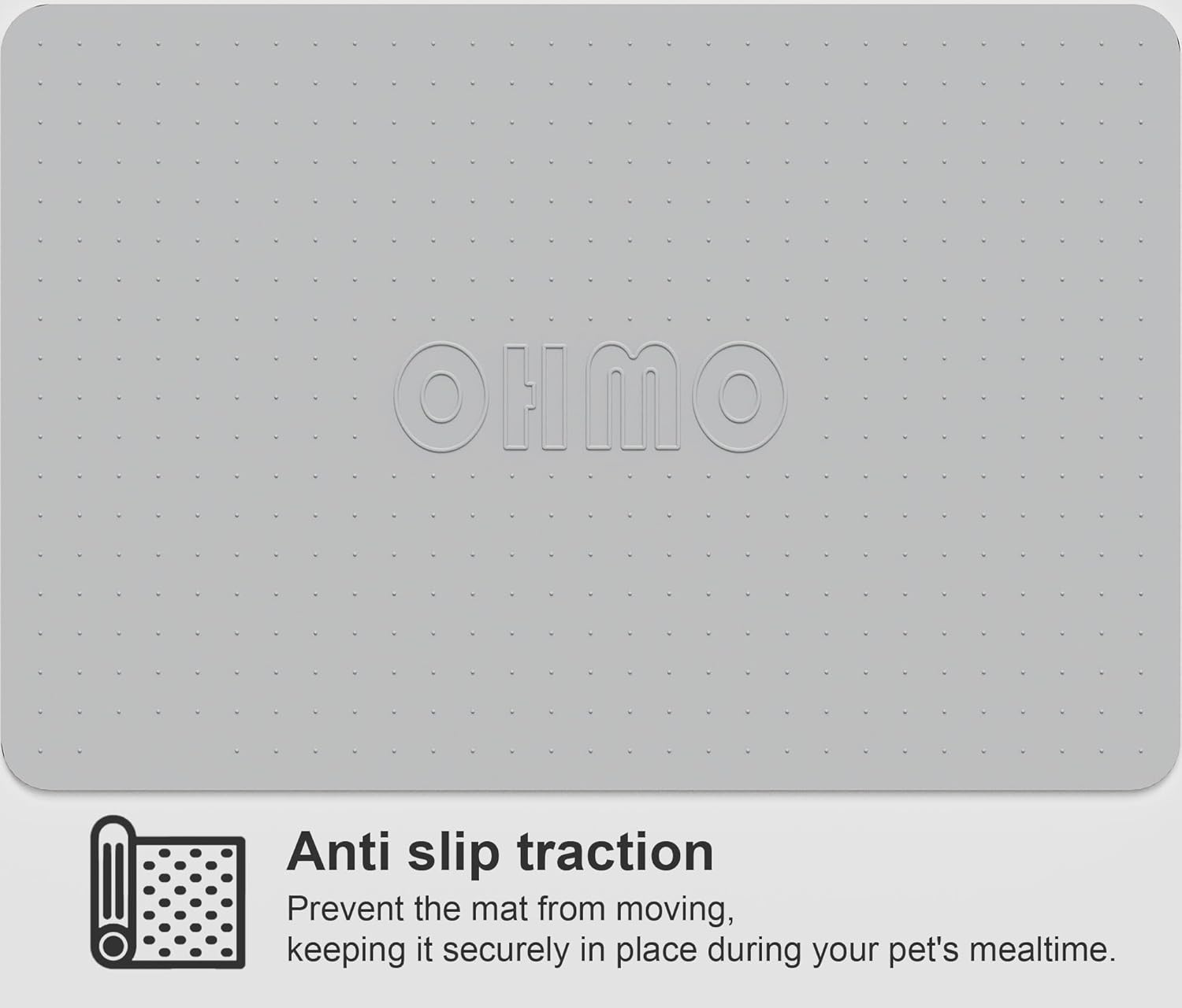 OHMO Dog Food Mat, Silicone Waterproof Cat Food Mat, Non-Skid Spill Proof Pet Feeding Mat for Food and Water, Easy to Clean Dog Placemat(Ash, 23.6" x 15.8")