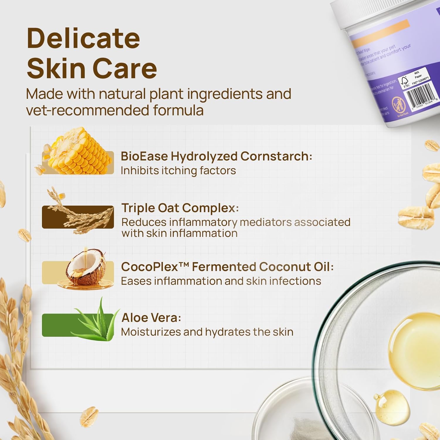 - Lick-safe & Hypoallergenic Ingredients: Featuring an innovative triple oat complex inspired by human skincare principles and introduced for the first time in pet care. This sophisticated blend of multiple oat extracts soothes and calms sensitive pet skin, providing gentler and more professional care. Fermented coconut oil and Manuka honey help reduce skin irritation and deeply moisturize the skin