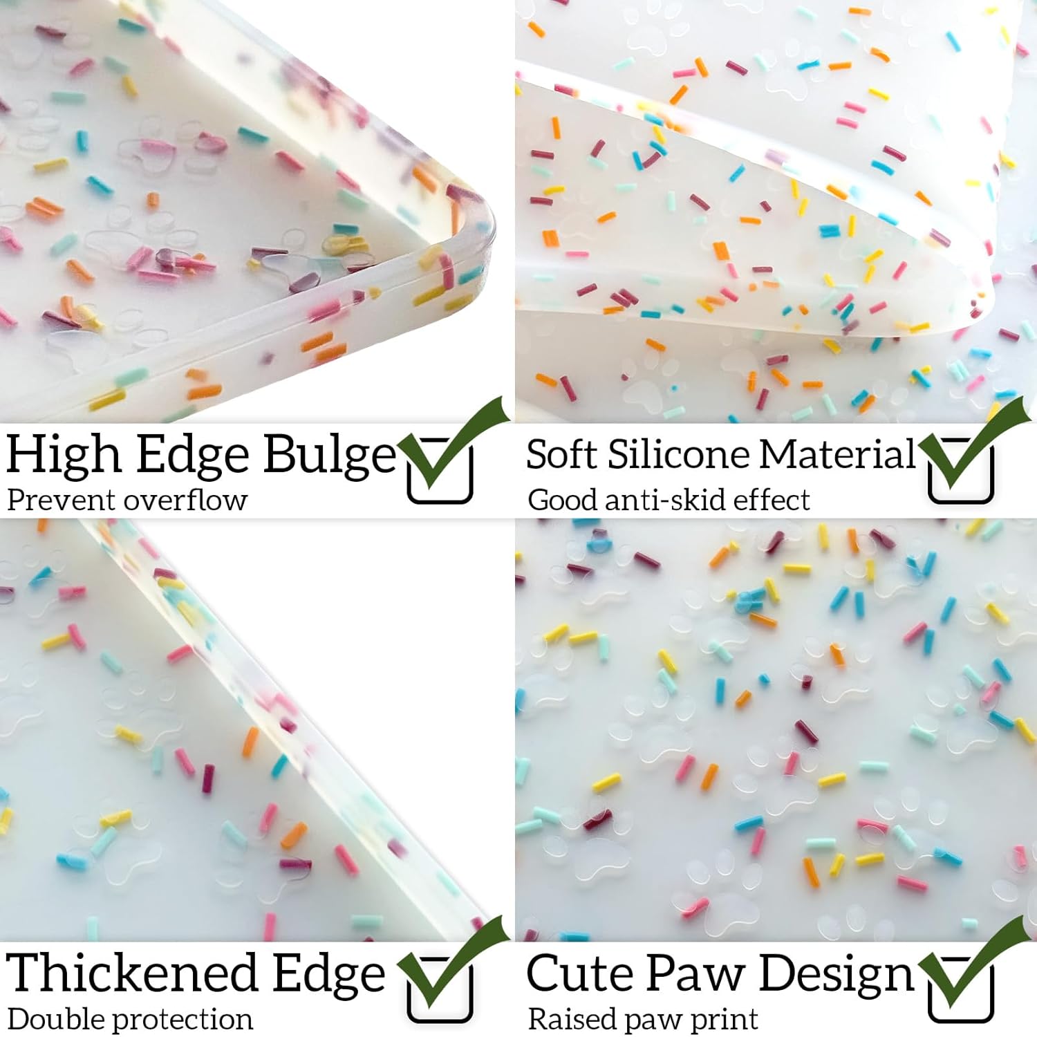 - Neat & Mess-Free: Raised edges with our dog placemat effectively prevent residue spills and splashes, letting mess keep away your floors. The thicker cat mat is perfect for keeping your home clean and tidy. Reduce cleaning time and pressure.