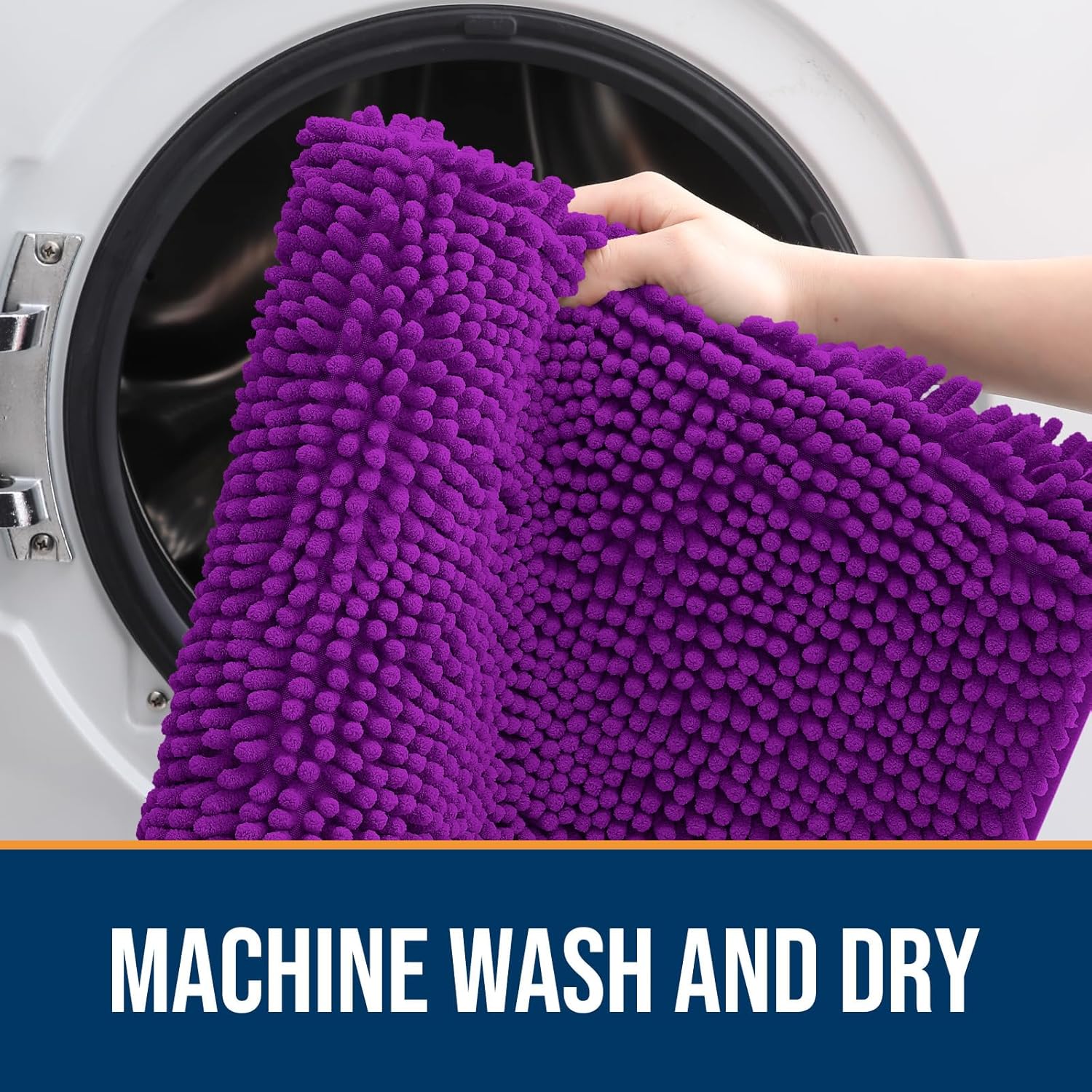 OLANLY Dog Door Mat for Muddy Paws 30x17, Absorbs Moisture and Dirt, Absorbent Non-Slip Washable Doormat, Quick Dry Chenille Mud Mat for Dogs, Entry Indoor Entryway Carpet for Inside Floor, Purple