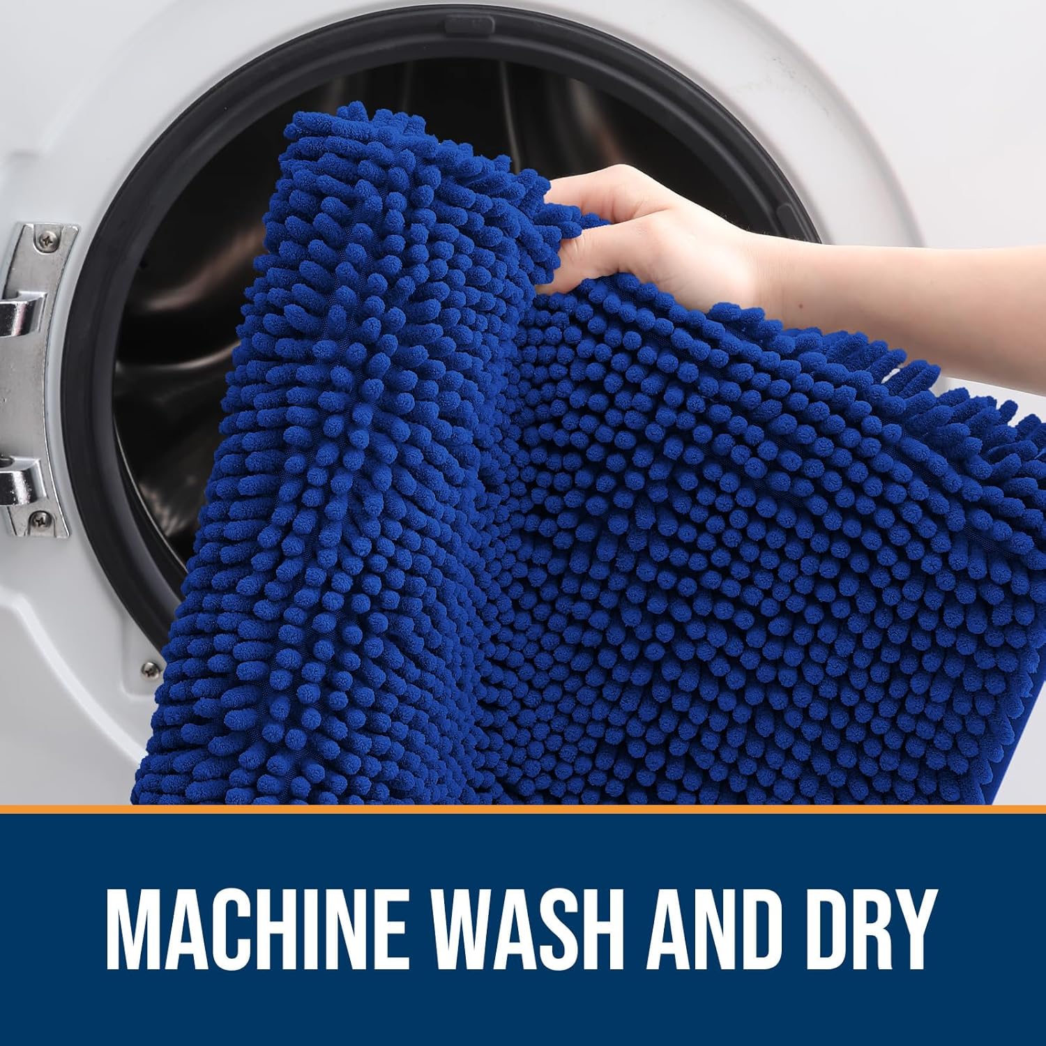 OLANLY Dog Door Mat for Muddy Paws 70x46, Absorbs Moisture and Dirt, Absorbent Non-Slip Washable Doormat, Quick Dry Chenille Mud Mat for Dogs, Entry Indoor Entryway Carpet for Inside Floor, Royal Blue