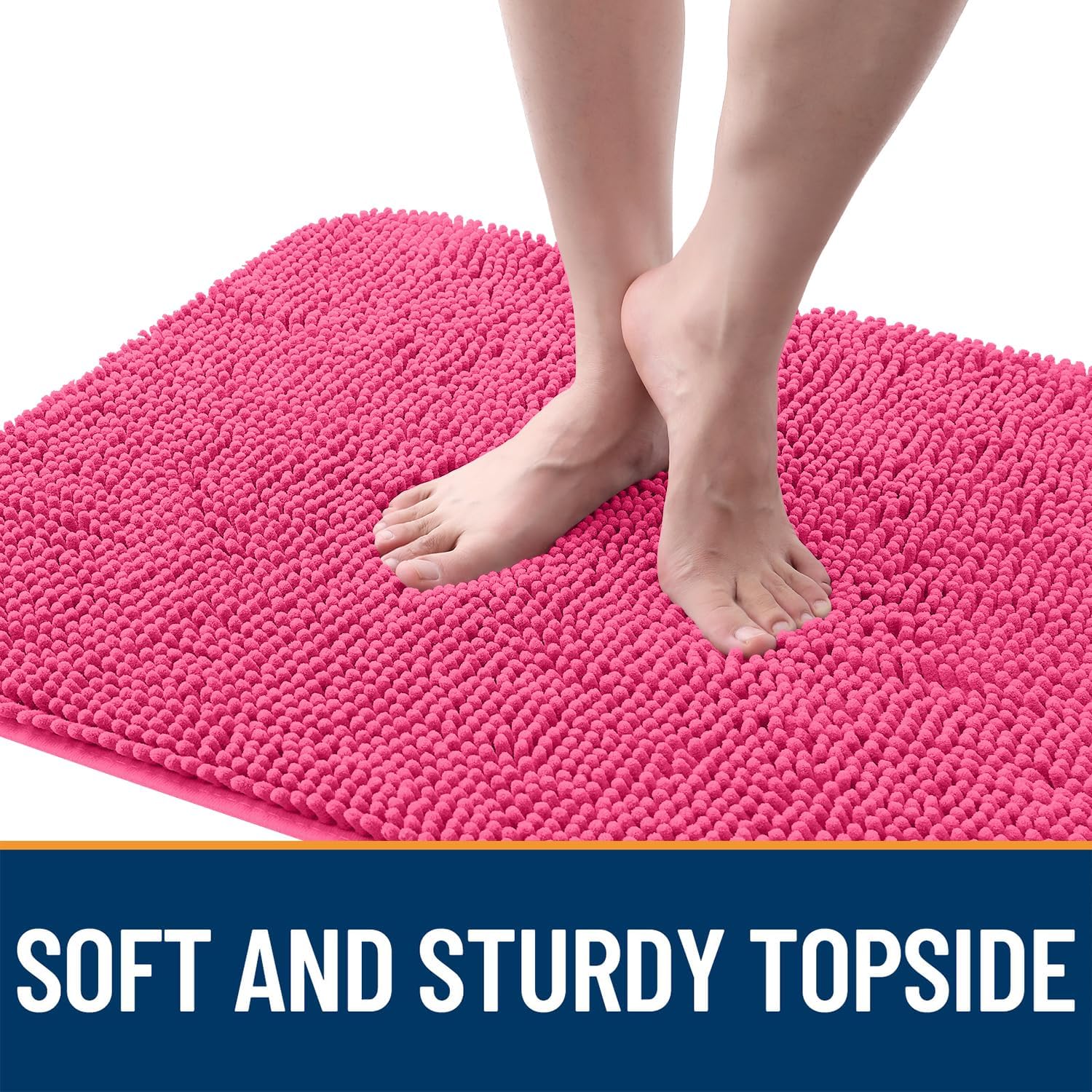 OLANLY Dog Door Mat for Muddy Paws 34x21, Absorbs Moisture and Dirt, Absorbent Non-Slip Washable Doormat, Quick Dry Chenille Mud Mat for Dogs, Entry Indoor Entryway Carpet for Inside Floor, Hot Pink