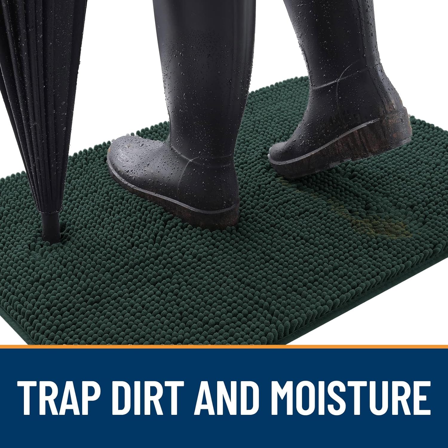 OLANLY Dog Door Mat for Muddy Paws 59x32, Absorbs Moisture and Dirt, Absorbent Non-Slip Washable Doormat, Quick Dry Chenille Mud Mat, Entry Indoor Entryway Carpet for Inside Floor, Blackish Green