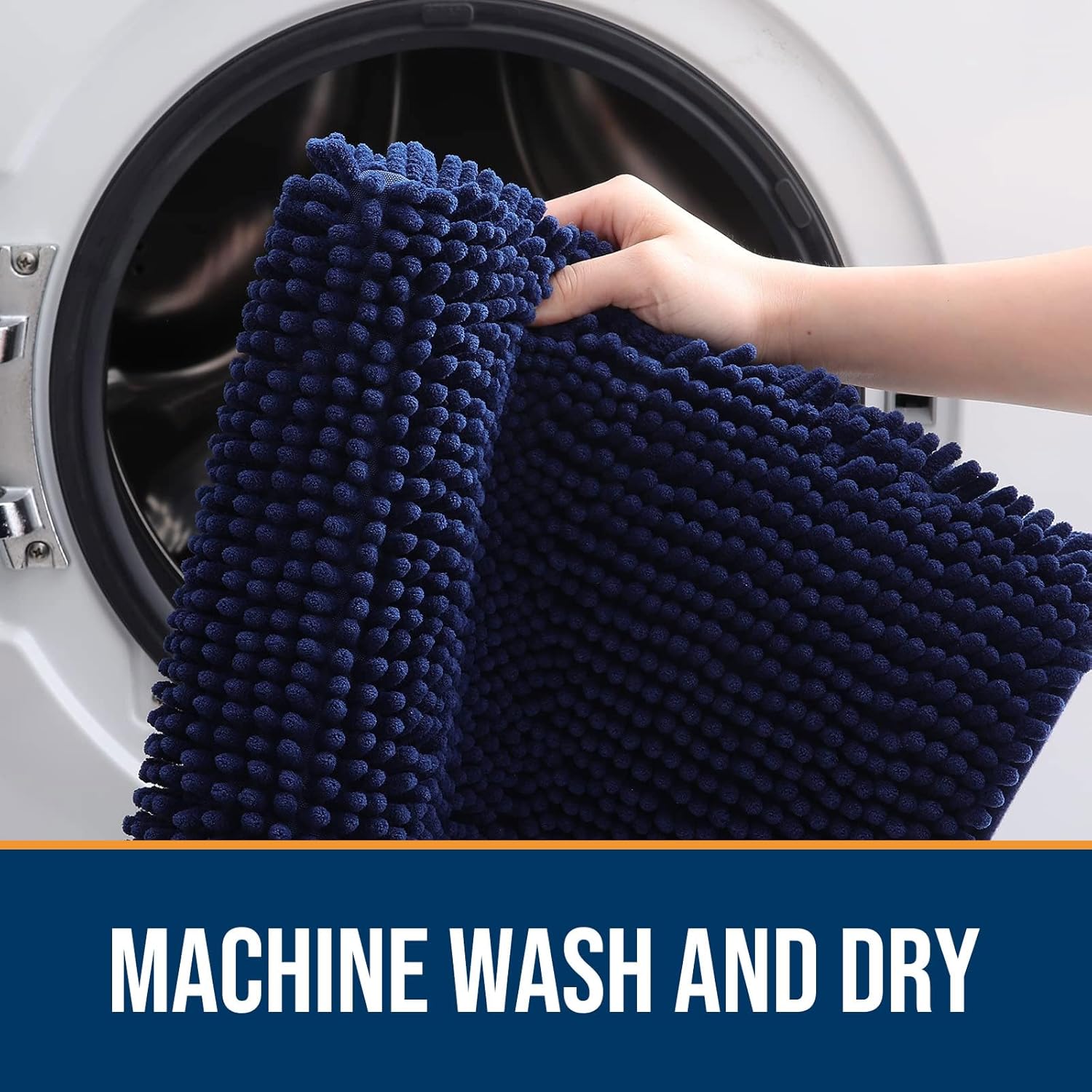 OLANLY Dog Door Mat for Muddy Paws 59x32, Absorbs Moisture and Dirt, Absorbent Non-Slip Washable Doormat, Quick Dry Chenille Mud Mat for Dogs, Entry Indoor Entryway Carpet for Inside Floor, Navy Blue
