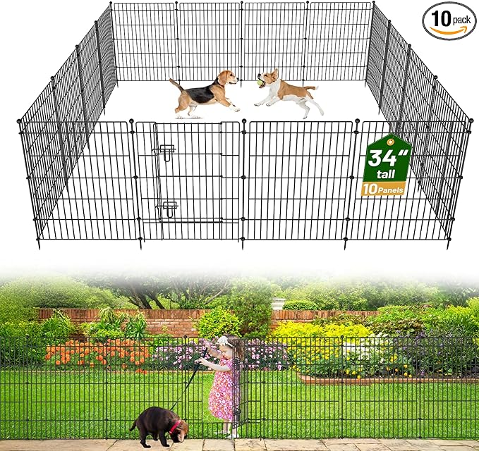 10 Panels No Dig Garden Fence with Gate, 34in(H) × 22.5ft(L) Decorative Metal Outdoor Dog Fence, Rustproof Pet Fencing for Yard, Patio, Flower Bed -Temporary Fencing| Easy to Install