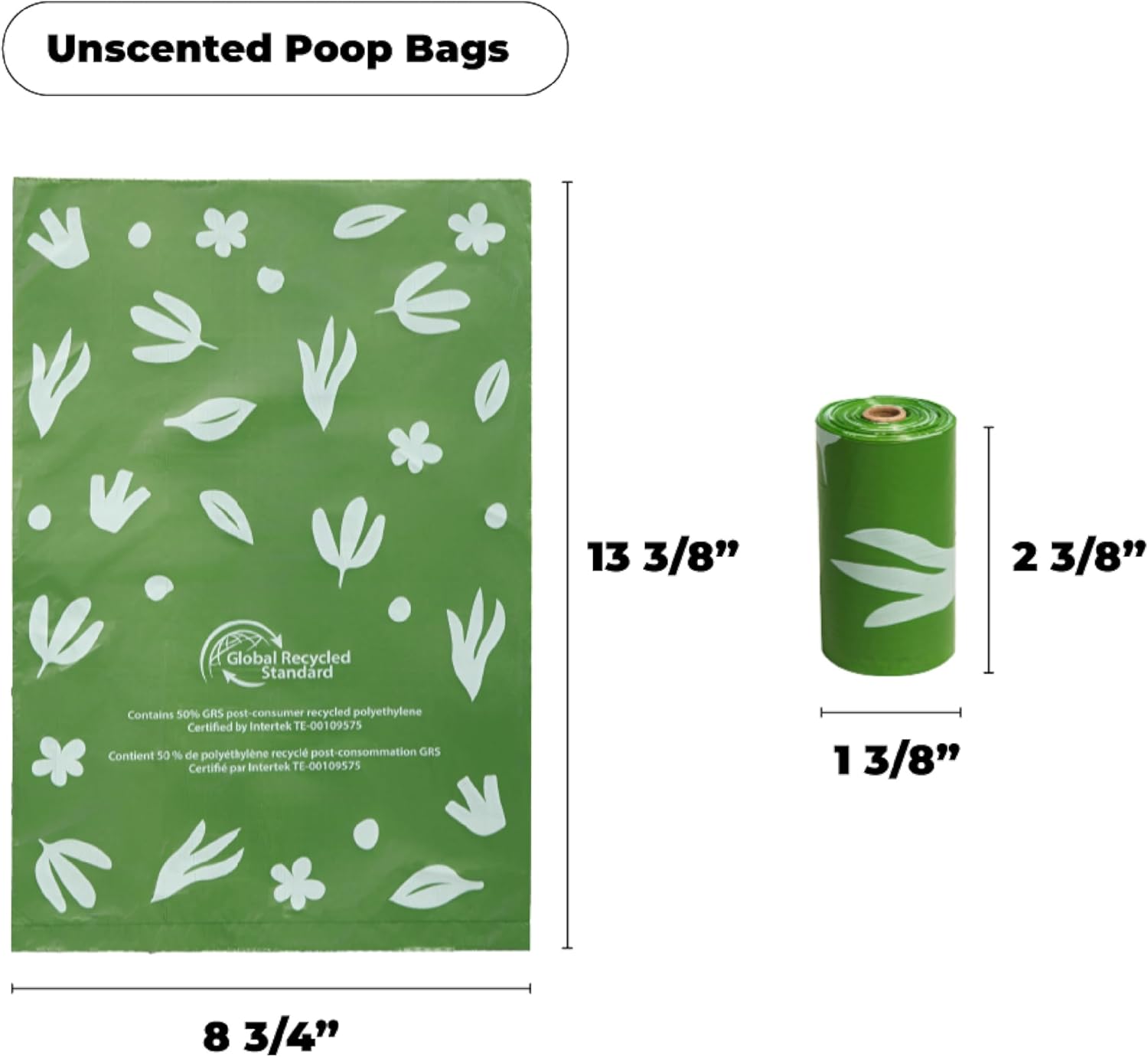 - Sustainability Promise: Embrace sustainability with every clean-up; our bags contain 50% post-consumer recycled content, making them an ideal choice for environmentally conscious pet owners. Using our certified poop bags for dogs not only reduces waste but also supports a greener planet with every use