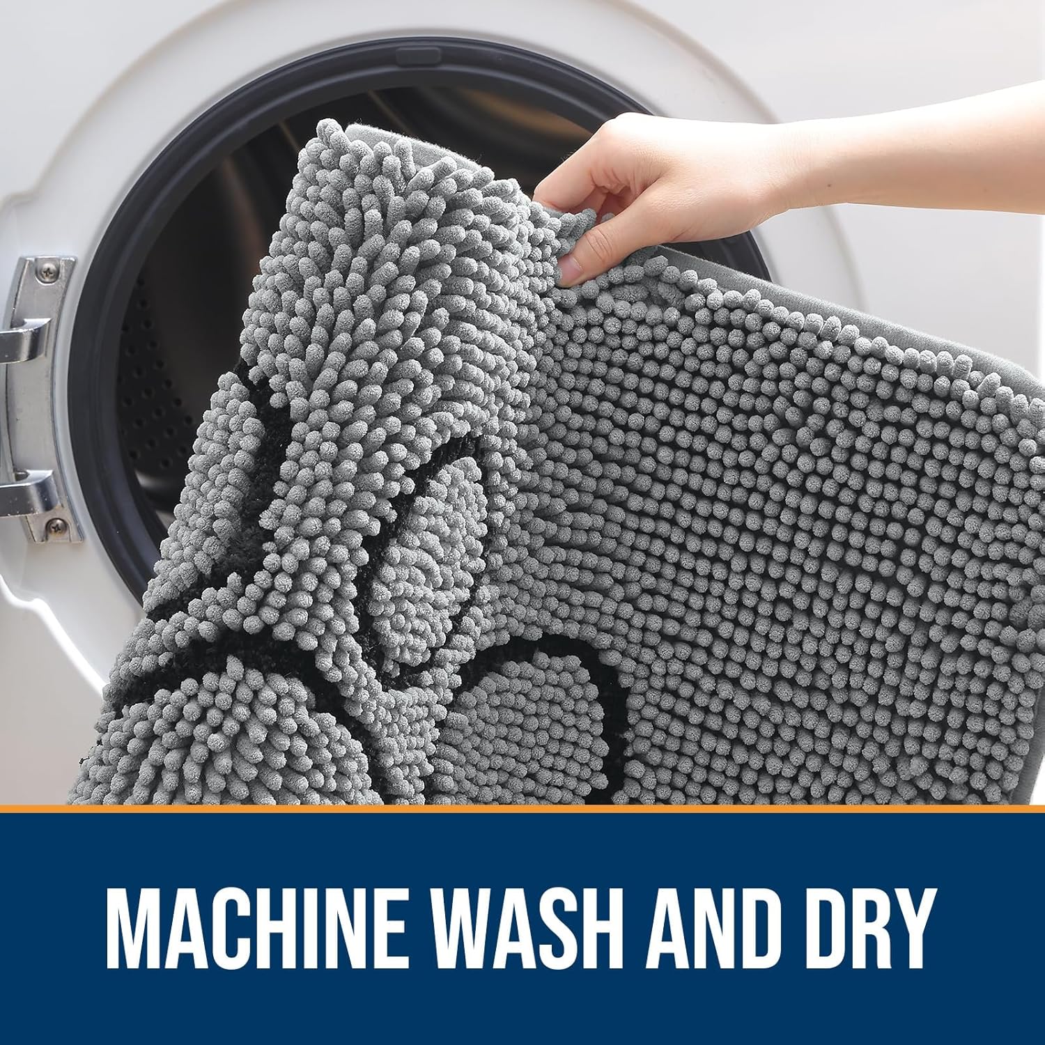OLANLY Door Mat for Muddy Dog Paws 30x20, Ultra Absorbent Chenille Mud Doormat with Paw Print Design, Non-Slip Washable Doormat for Indoor Entryway, Quick-Dry Pet Bed Mats for Dirty Dogs, Grey