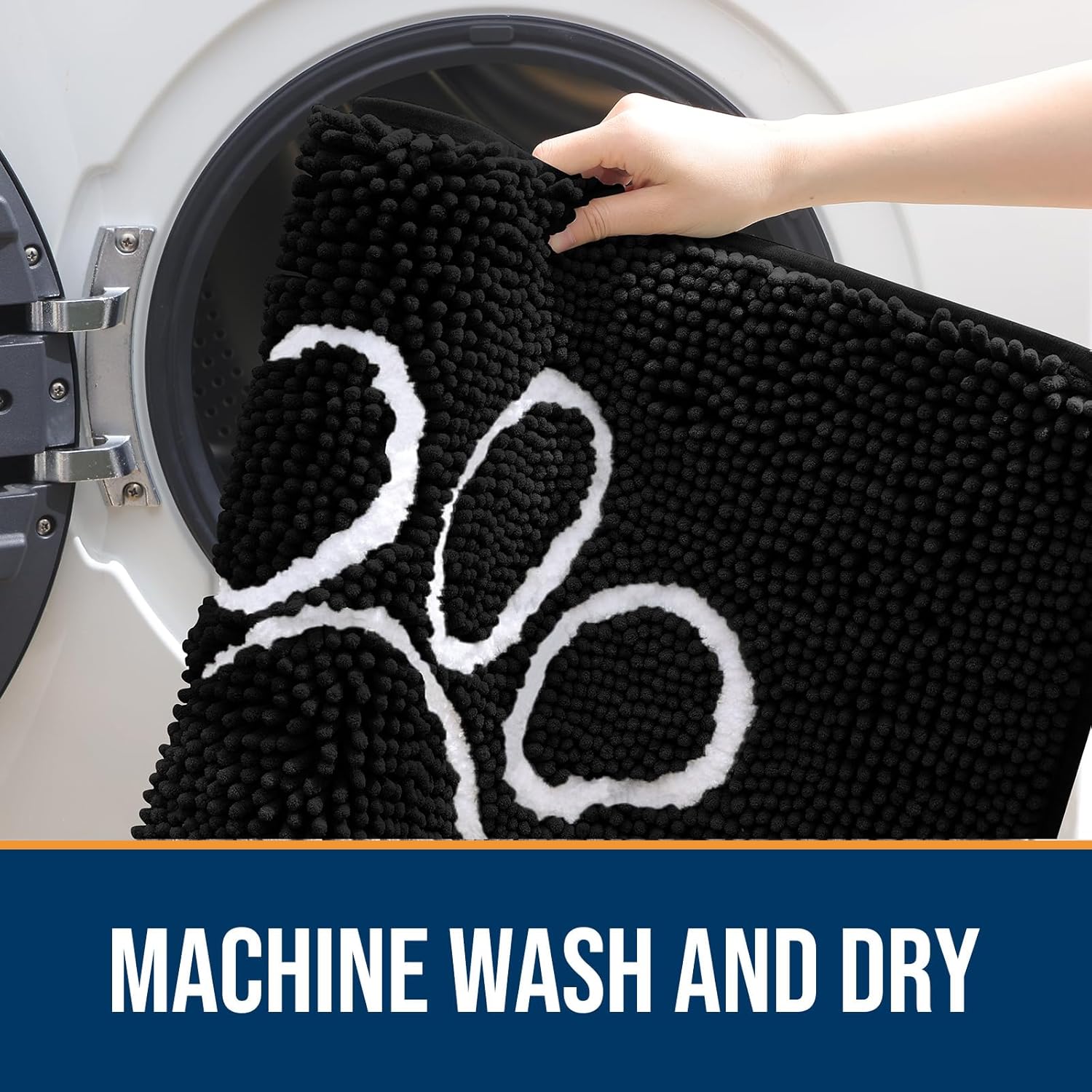 OLANLY Door Mat for Muddy Dog Paws 59x35, Ultra Absorbent Chenille Mud Doormat with Paw Print Design, Non-Slip Washable Doormat for Indoor Entryway, Quick-Dry Pet Bed Mats for Dirty Dogs, Black