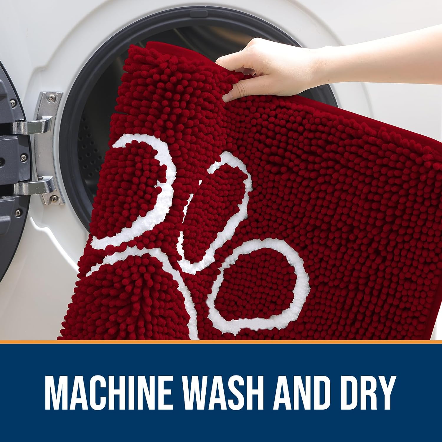 OLANLY Door Mat for Muddy Dog Paws 30x20, Ultra Absorbent Chenille Mud Doormat with Paw Print Design, Non-Slip Washable Doormat for Indoor Entryway, Quick-Dry Pet Bed Mats for Dirty Dogs, Red