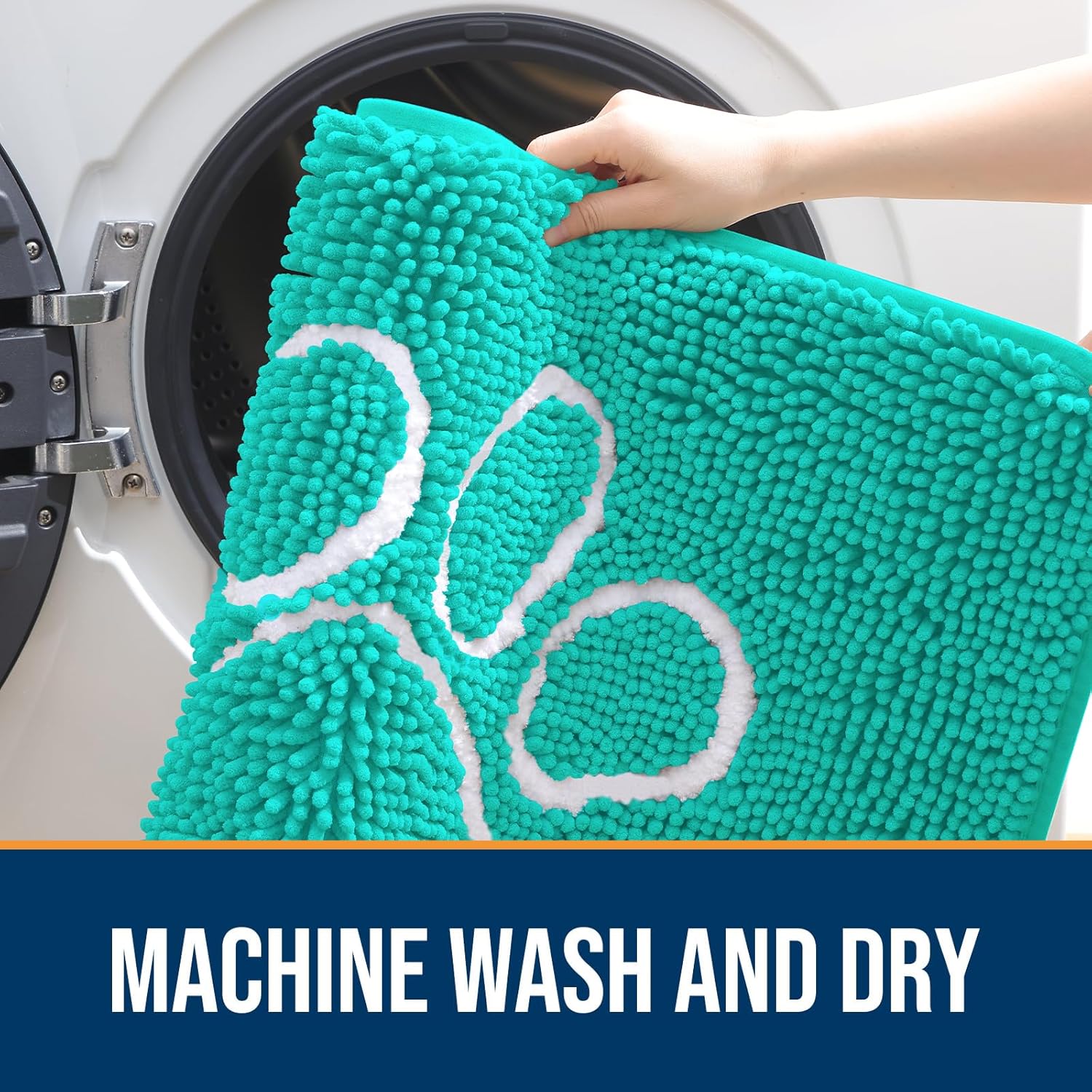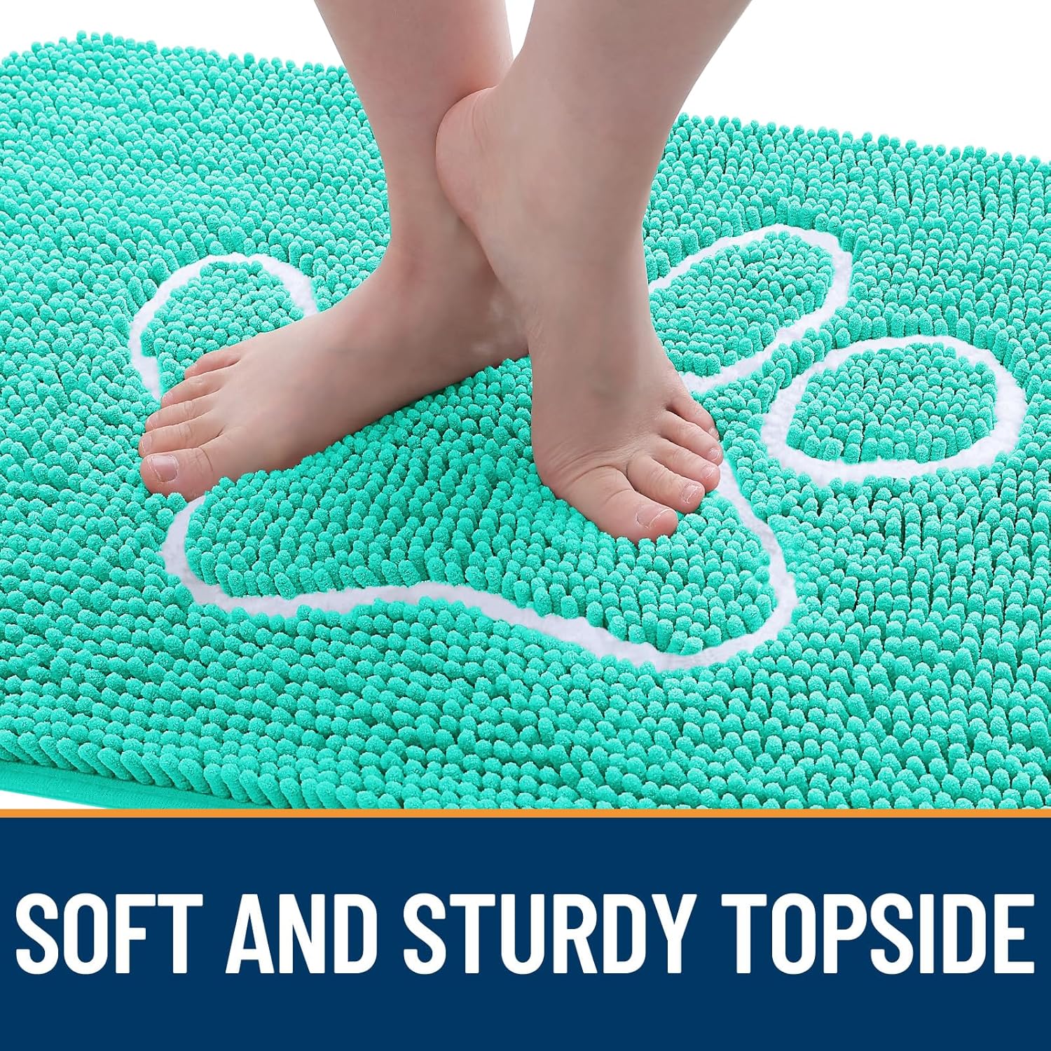 OLANLY Door Mat for Muddy Dog Paws 48x30, Ultra Absorbent Chenille Mud Doormat with Paw Print Design, Non-Slip Washable Doormat for Indoor Entryway, Quick-Dry Pet Bed Mats for Dirty Dogs, Teal