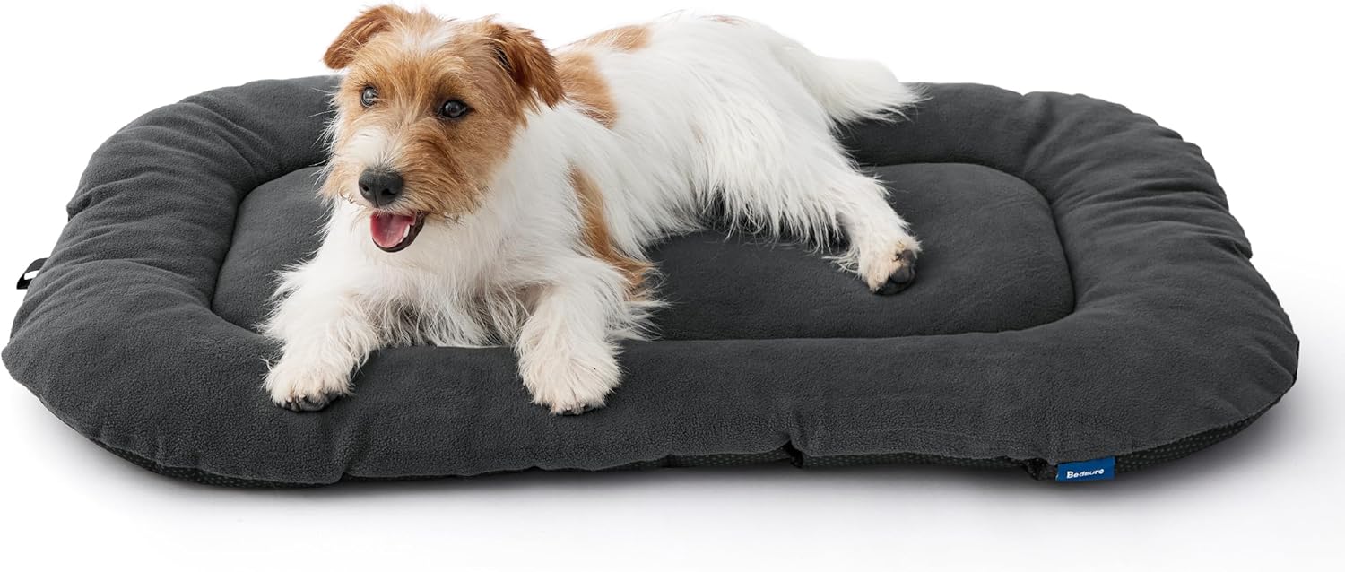 Bedsure Washable Dog Crate Pad for Medium Dogs, Anti-Slip Puppy Kennel Dog Bed for Crate - Ultra Soft Fleece Flat Thin Pet Mat (Not Chew Proof), Grey 29"x21"