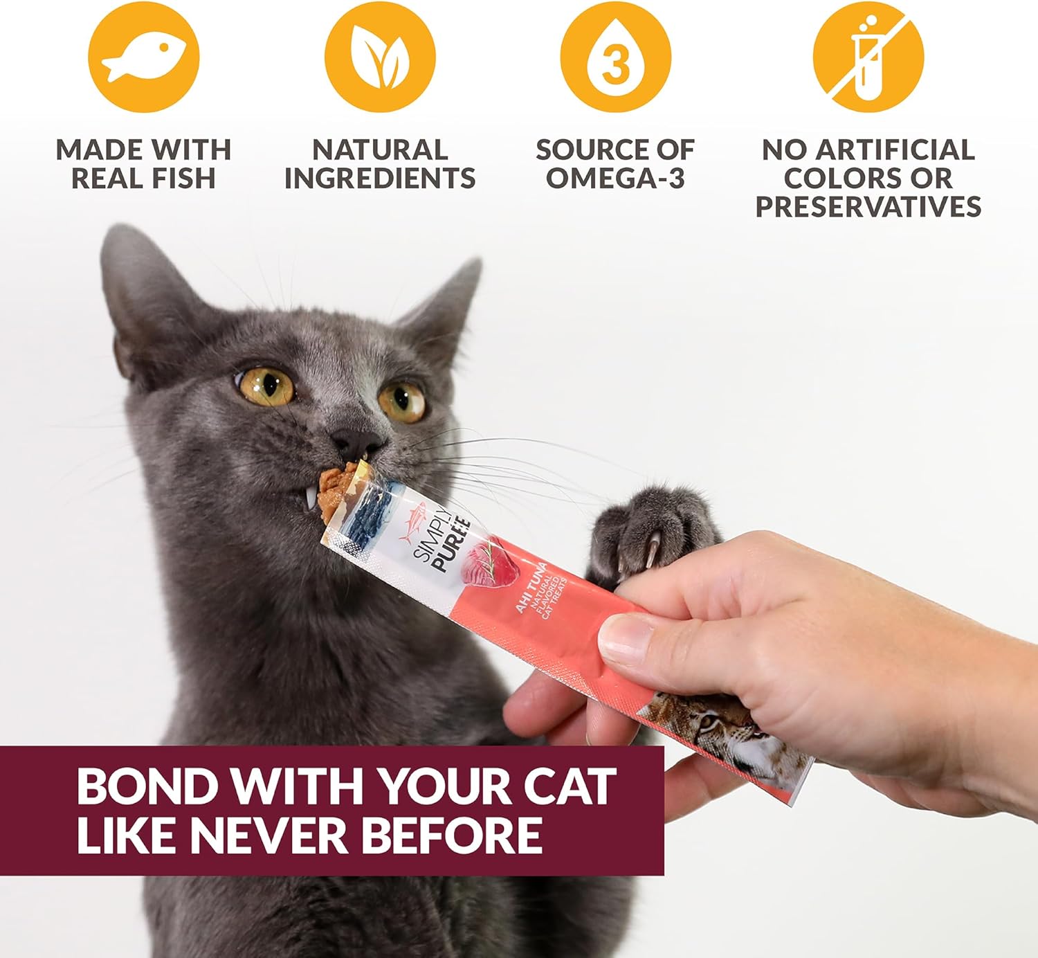 Simply Puree Variety Tub for Cats | 48 Individual Servings of All-Natural, High-Protein Puree Treats | Includes Multiple Flavors | Grain-Free, No Artificial Additives, Smooth Texture