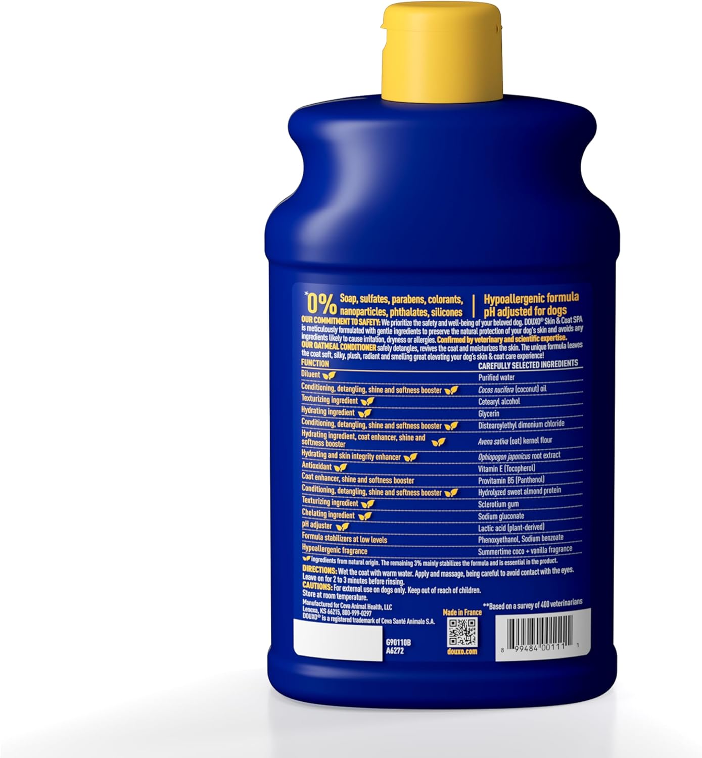 - ULTRA-SAFE HYPOALLERGENIC SKIN-FRIENDLY CLEANSING: DOUXO Skin & Coat SPA oatmeal conditioner gently moisturizes and nourishes your dogs skin and detangles the coat, leaving it soft, silky and radiant after every use.