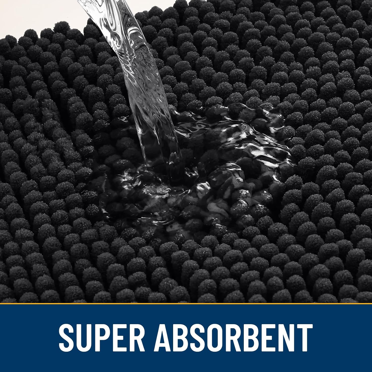 Smiry Dog Door Mat for Muddy Paws 70x24, Absorbs Moisture and Dirt Doormat, Non-Slip Washable Quick Dry Chenille Front Door Mat Indoor Entrance, Entryway Carpet for Inside Floor, Black