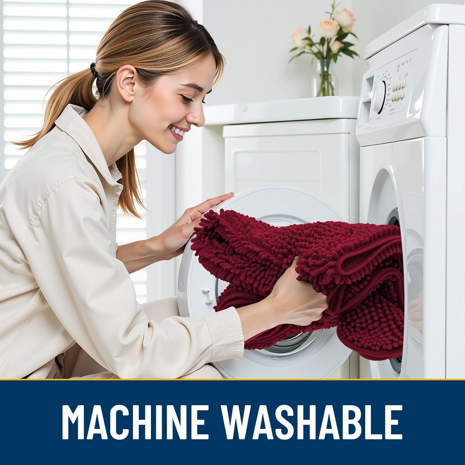 Smiry Dog Door Mat for Muddy Paws 36x24, Absorbs Moisture and Dirt Doormat, Non-Slip Washable Quick Dry Chenille Front Door Mat Indoor Entrance, Entryway Carpet for Inside Floor, Burgundy